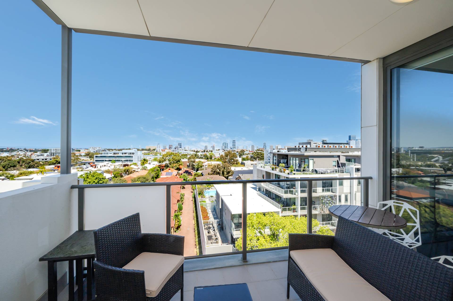 -Balcony offering sweeping east-facing views across to city, Optus Stadium and Swan River