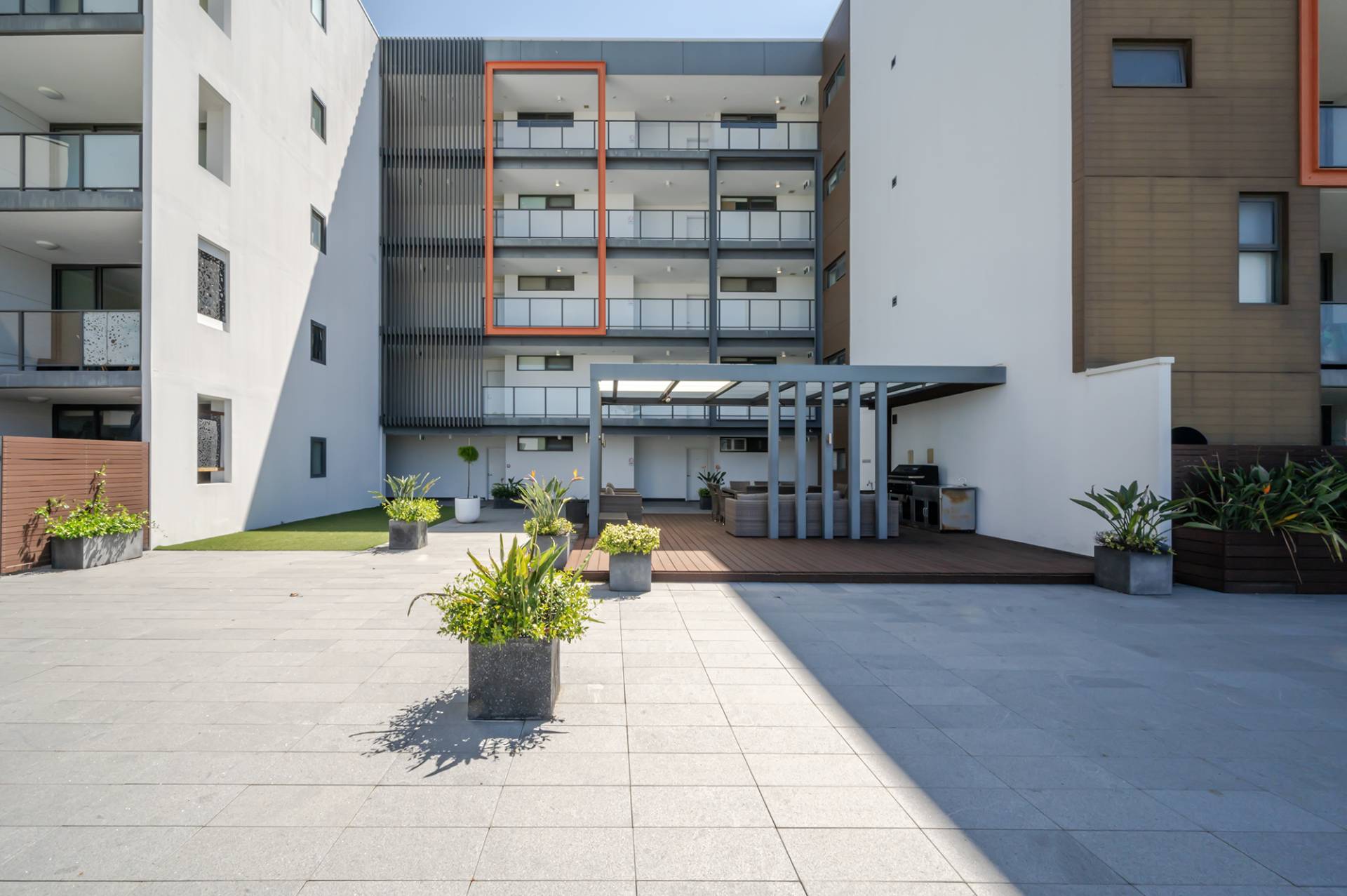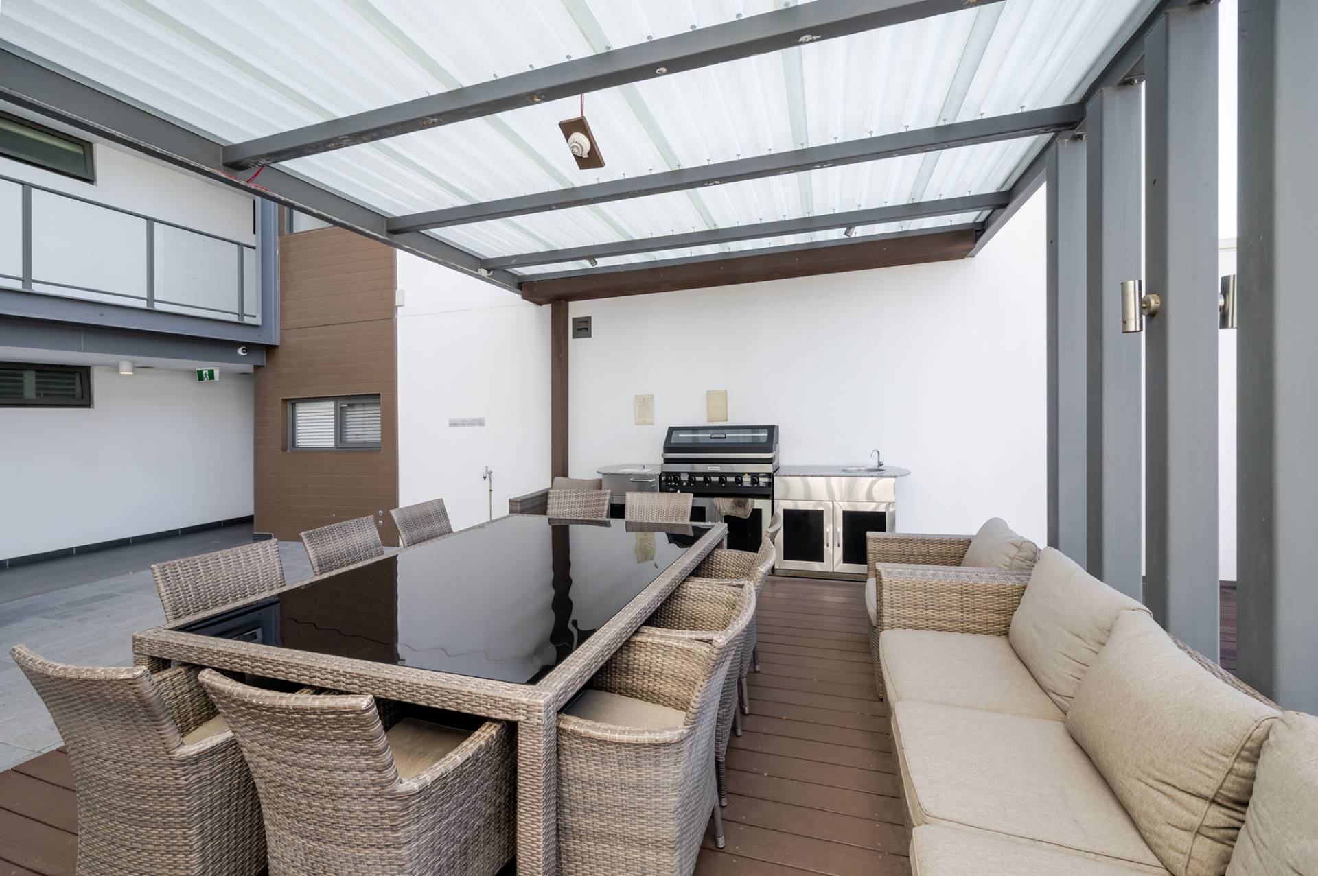 -Communal rooftop lounge/terrace and garden area with undercover dining area, outdoor kitchen with BBQ