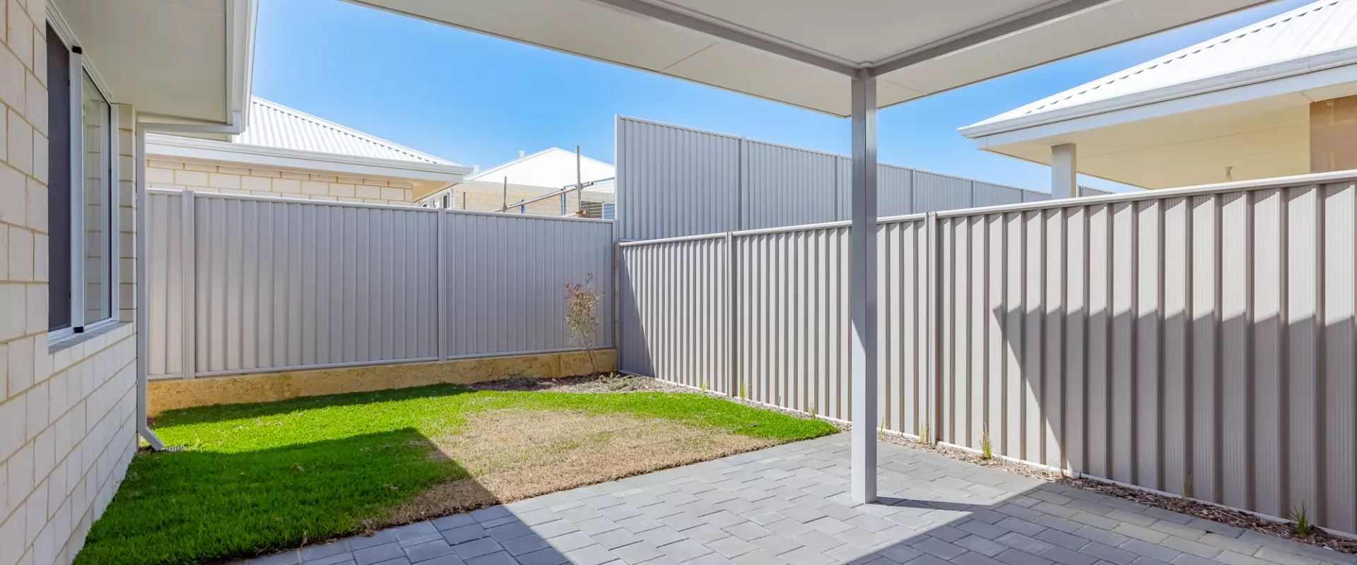 Low-maintenance backyard with fully reticulated lawns