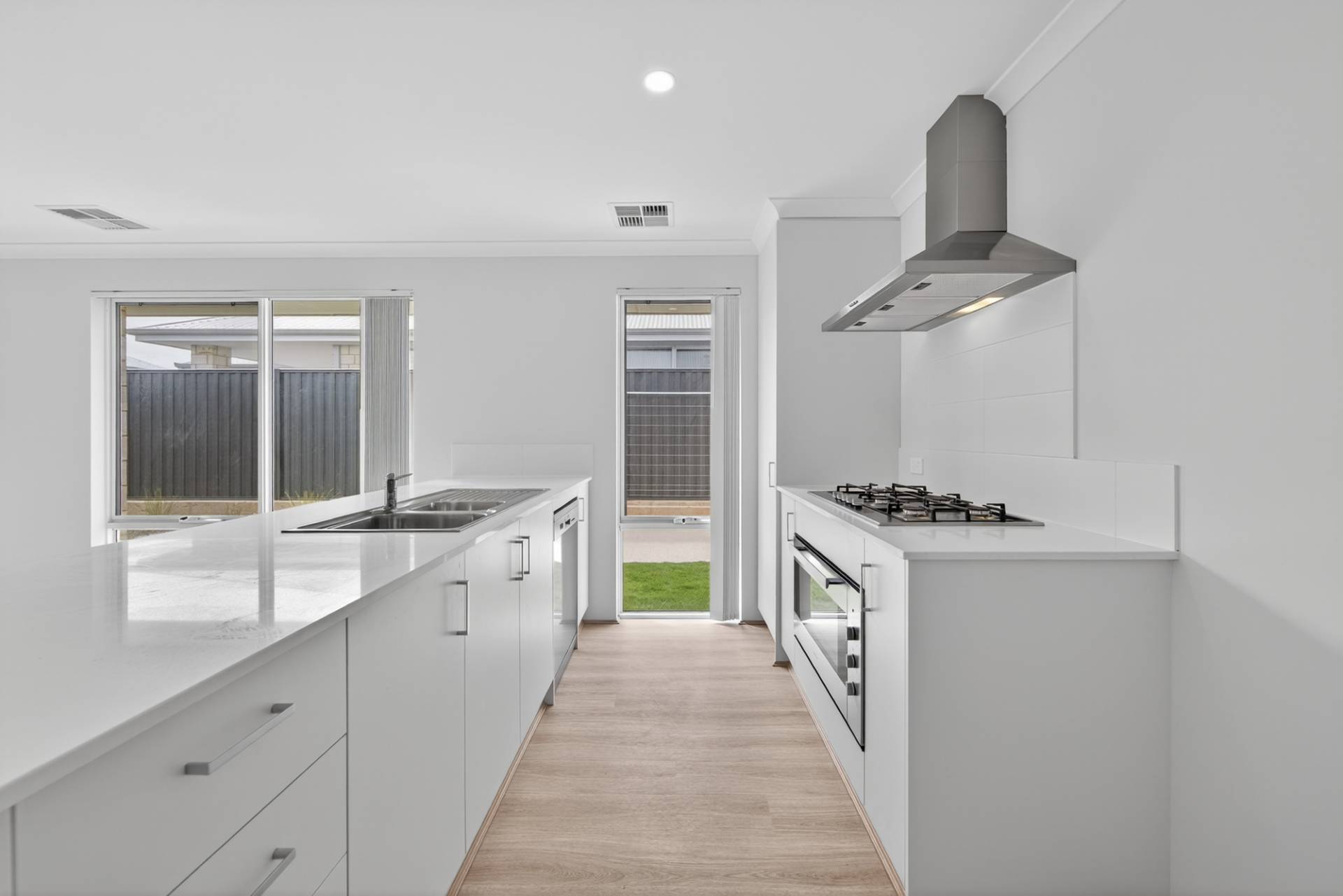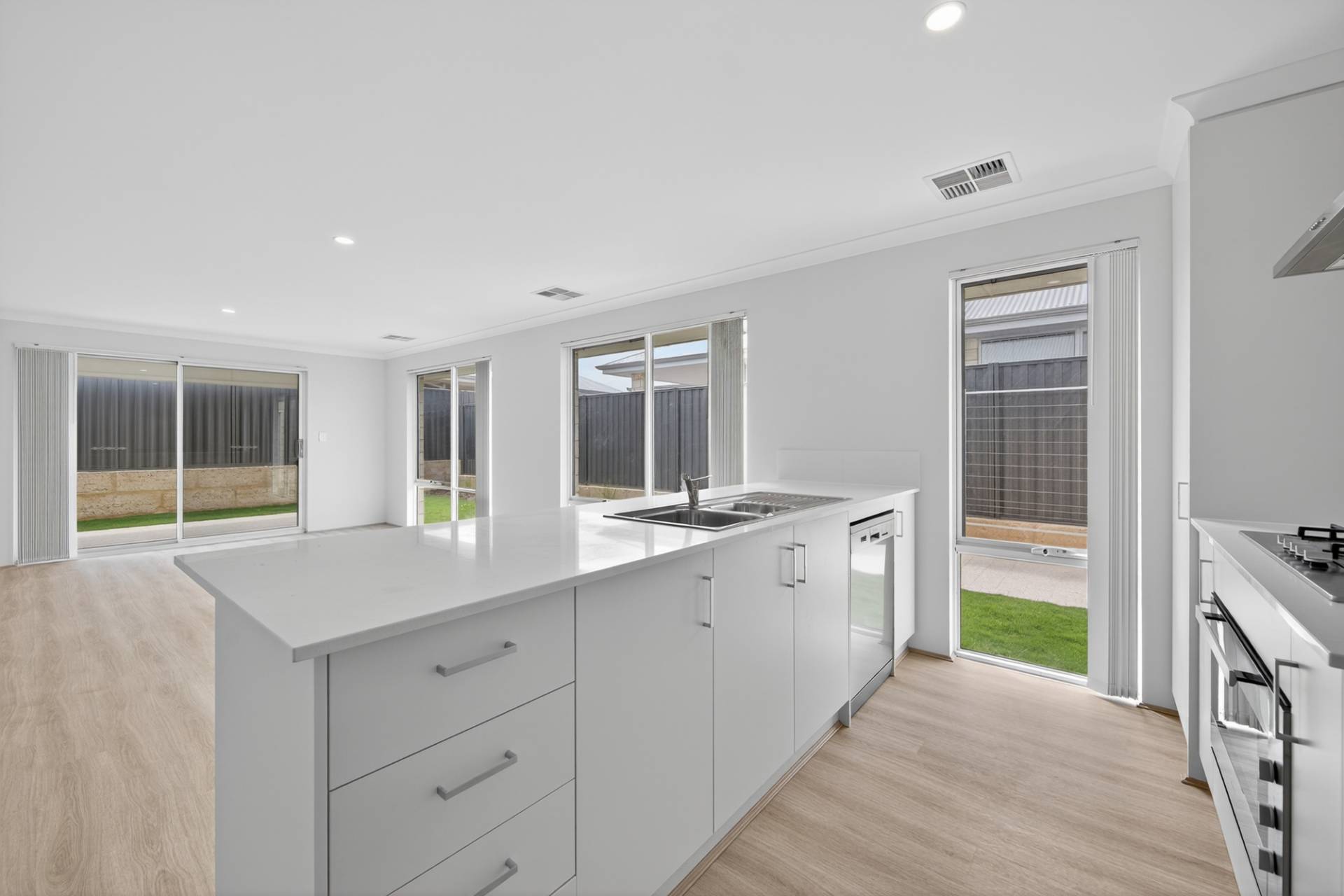 The kitchen is a standout, equipped with stone benchtops, dual sinks, a 900mm oven and gas stovetop, dishwasher, and a generous island bench perfect for casual meals or entertaining.