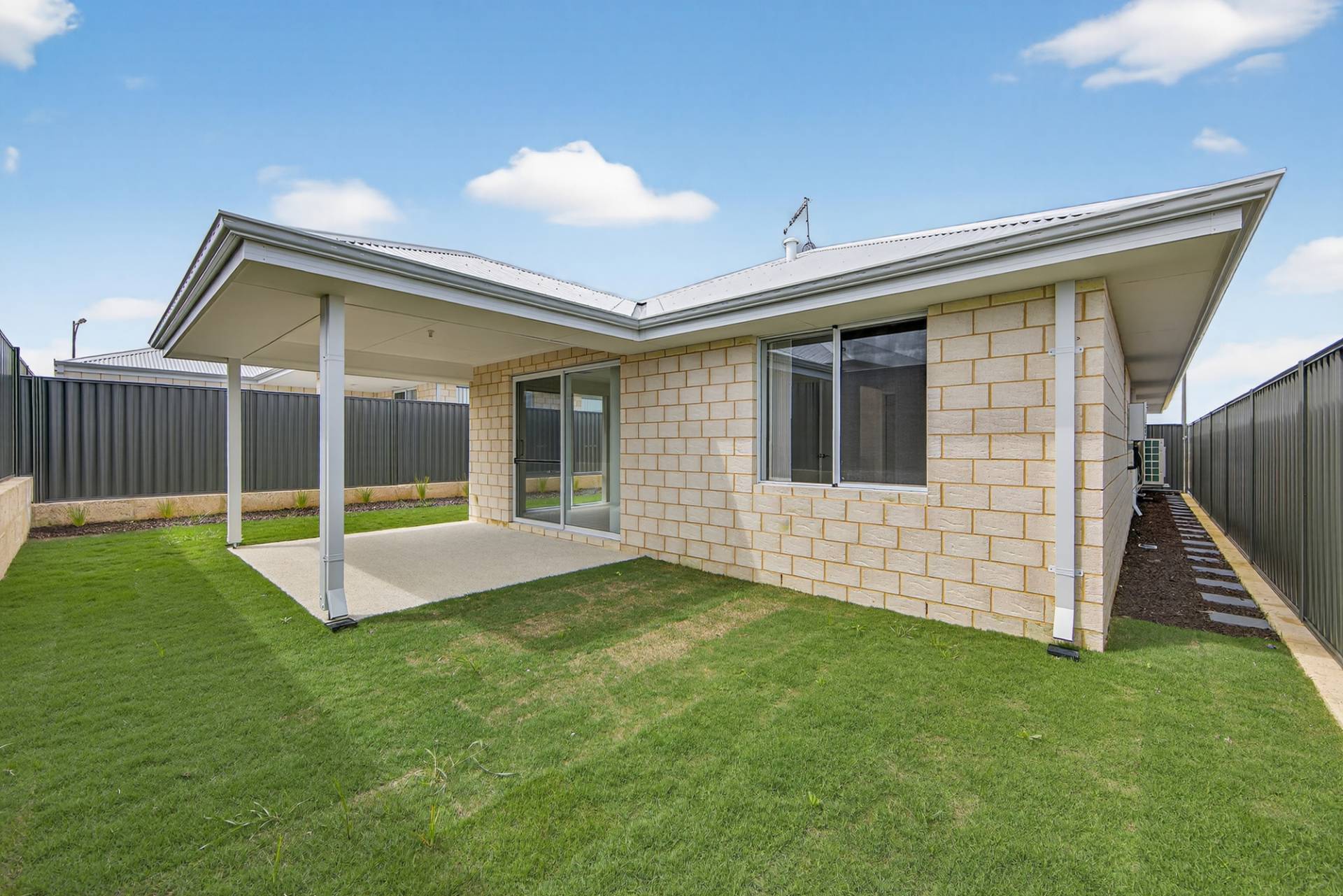At the front of the home, the master suite features a modern ensuite, walk in robe and sliding door access to the alfresco. The minor bedrooms are well sized, fitted with mirrored built-in robes and serviced by a stylish main bathroom with quality finishes and a full sized shower. The backyard offers plenty of space without the upkeep.