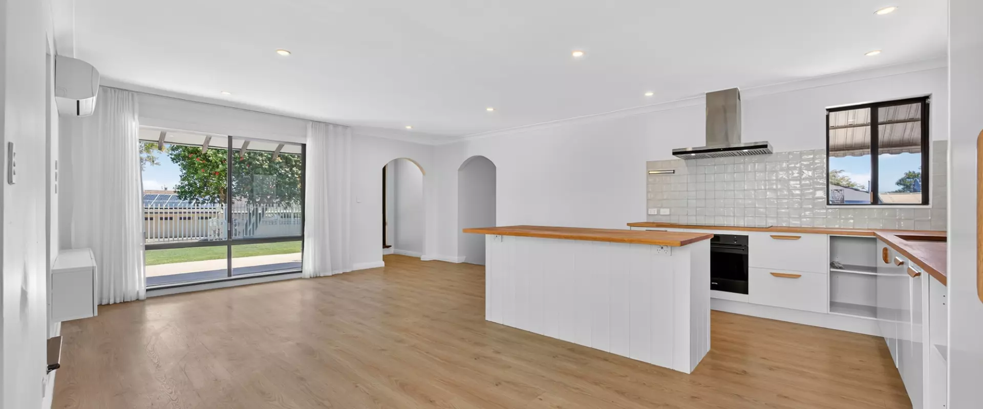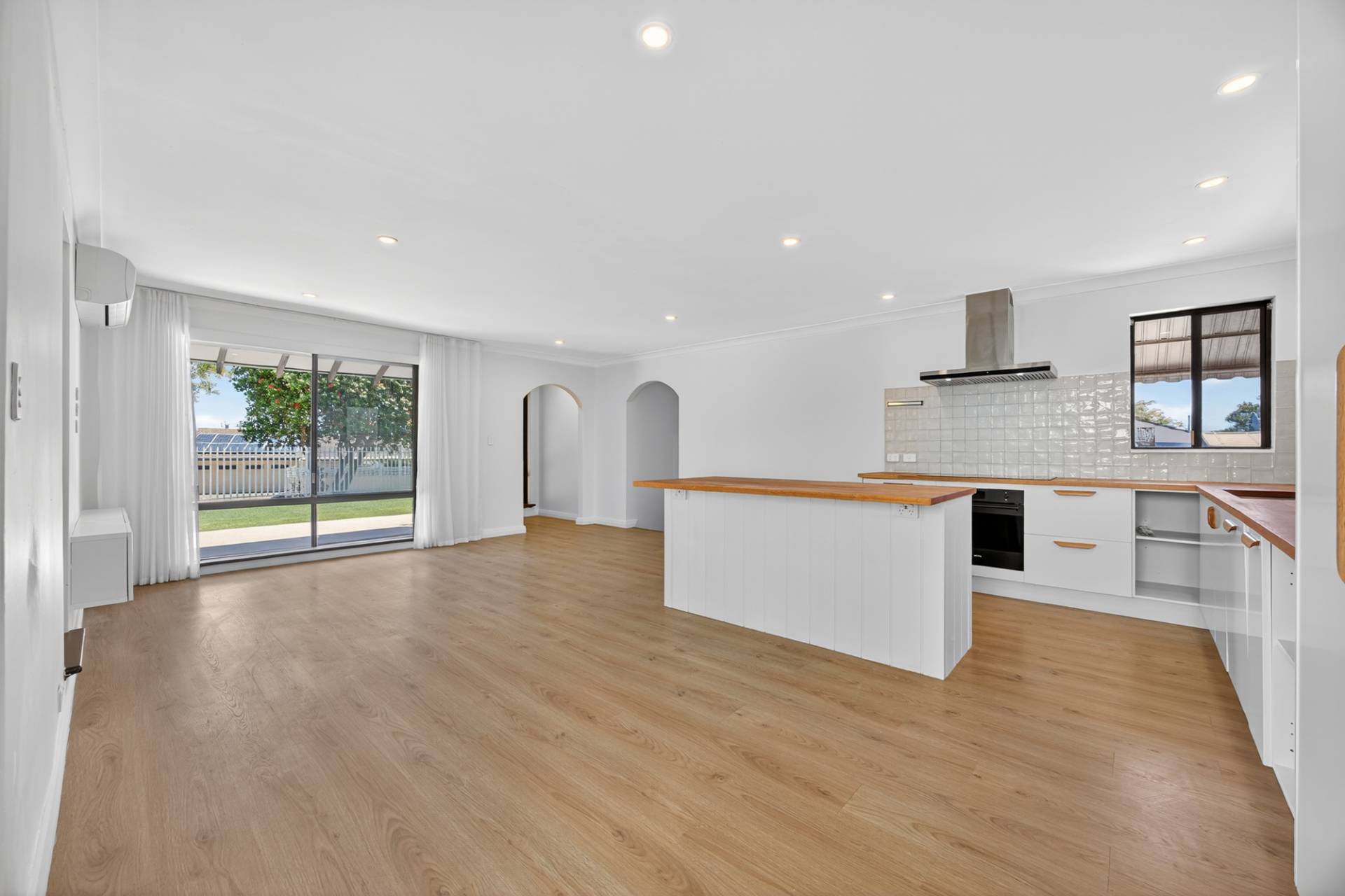 Nestled in a quiet cul-de-sac, in a prime Hillarys location, this beautifully renovated home offers the perfect blend of modern living and coastal charm. Boasting three bedrooms and a sleek bathroom featuring a large walk-in shower and stunning basin with elegant cabinetry, every detail has been carefully considered. The open-plan living area is bathed in natural light through sheer curtains, creating a warm and inviting space, with a dedicated lounge area perfect for relaxing with family or entertaining guests.