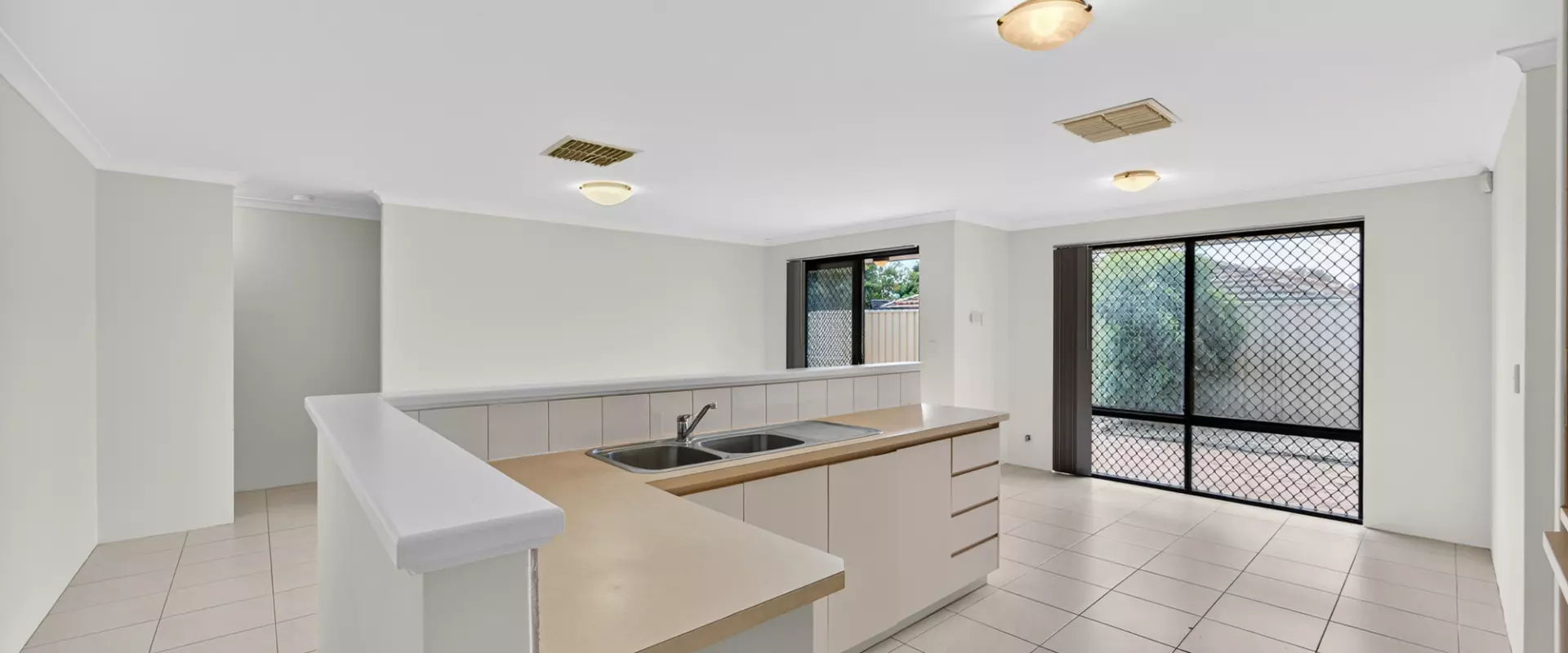 Open-plan kitchen, dining and living zone