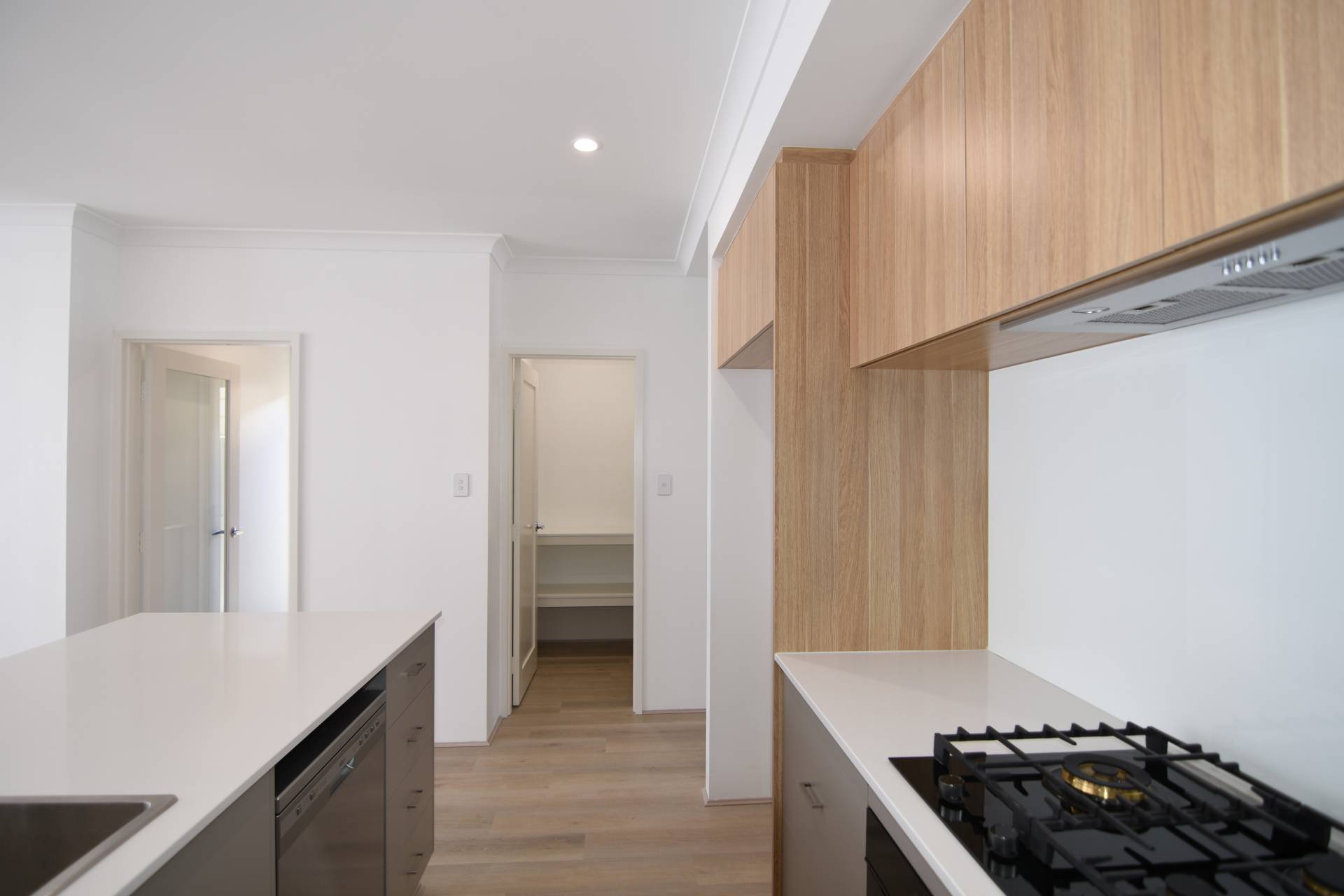 Modern kitchen featuring a dishwasher, ample storage, and quality finishes