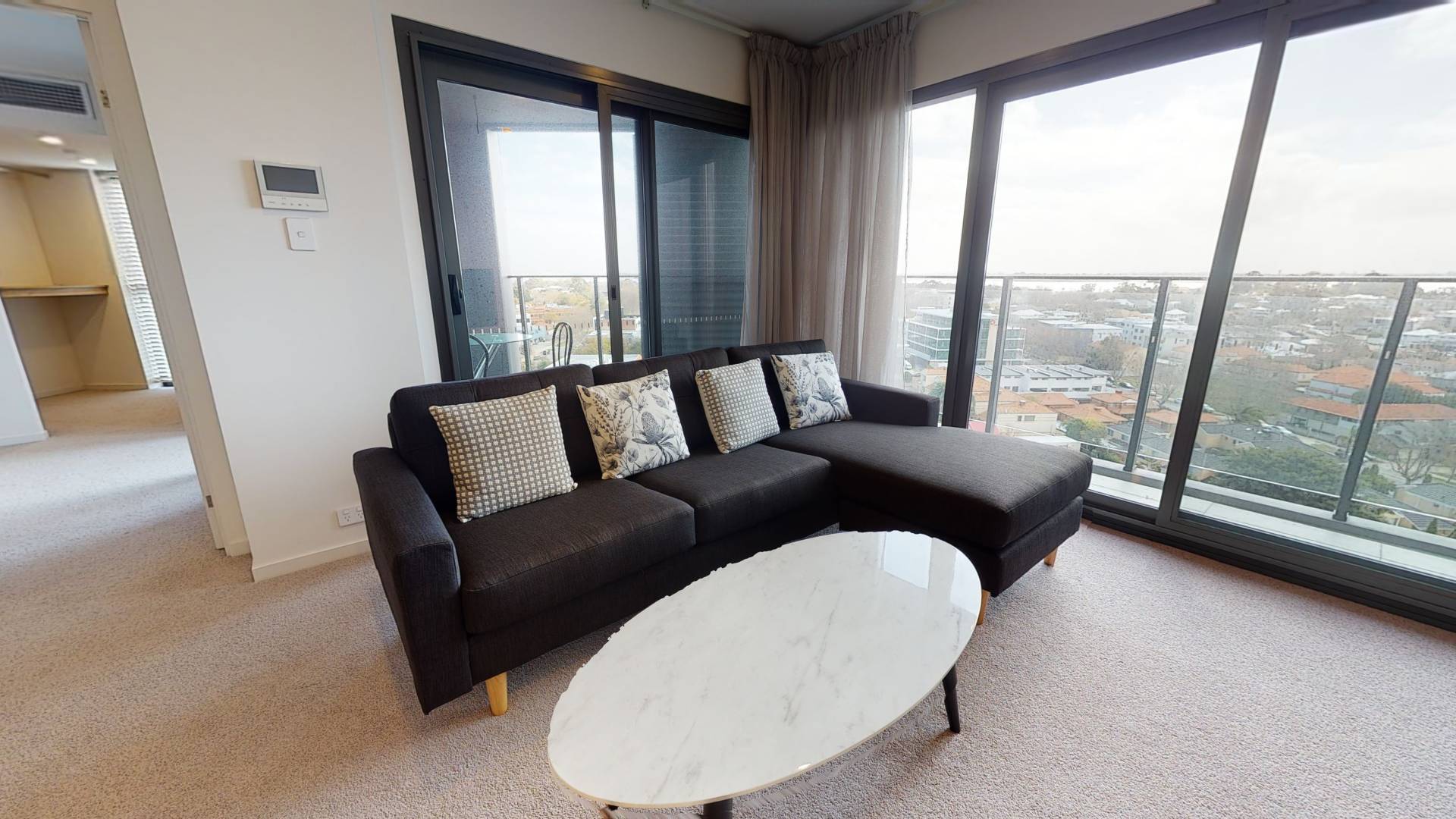Set high in the boutique 30 storey Sabina Apartments at 1203/908CanningHighway, Applecross, this fully furnished and equipped two bedroom, two bathroom apartment invites you to embrace a lifestyle of light, ease and convenience. Enjoy morning coffee on the balcony with sweeping River views, then stroll to the foreshore or nearby cafs at your leisure.