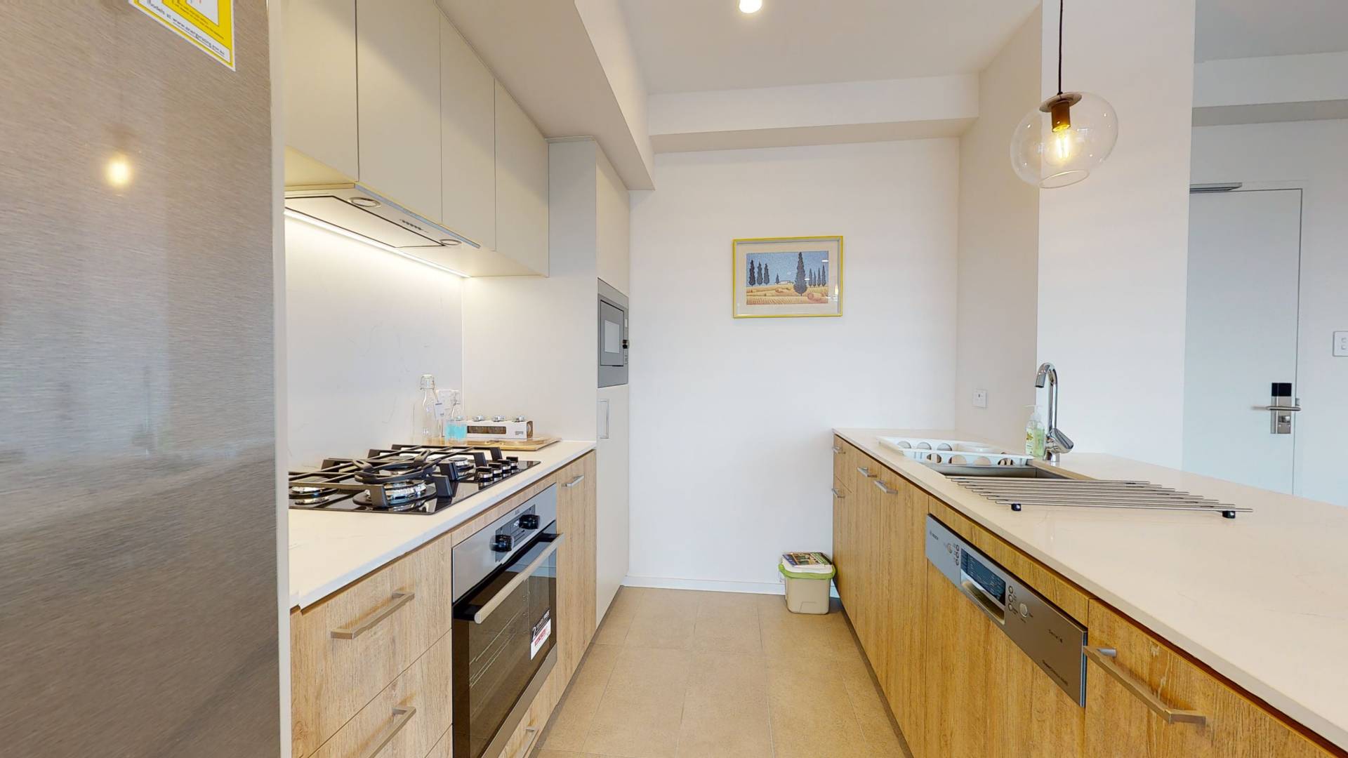 - Modern kitchen with gas cooktop, dishwasher and stainless steel appliances