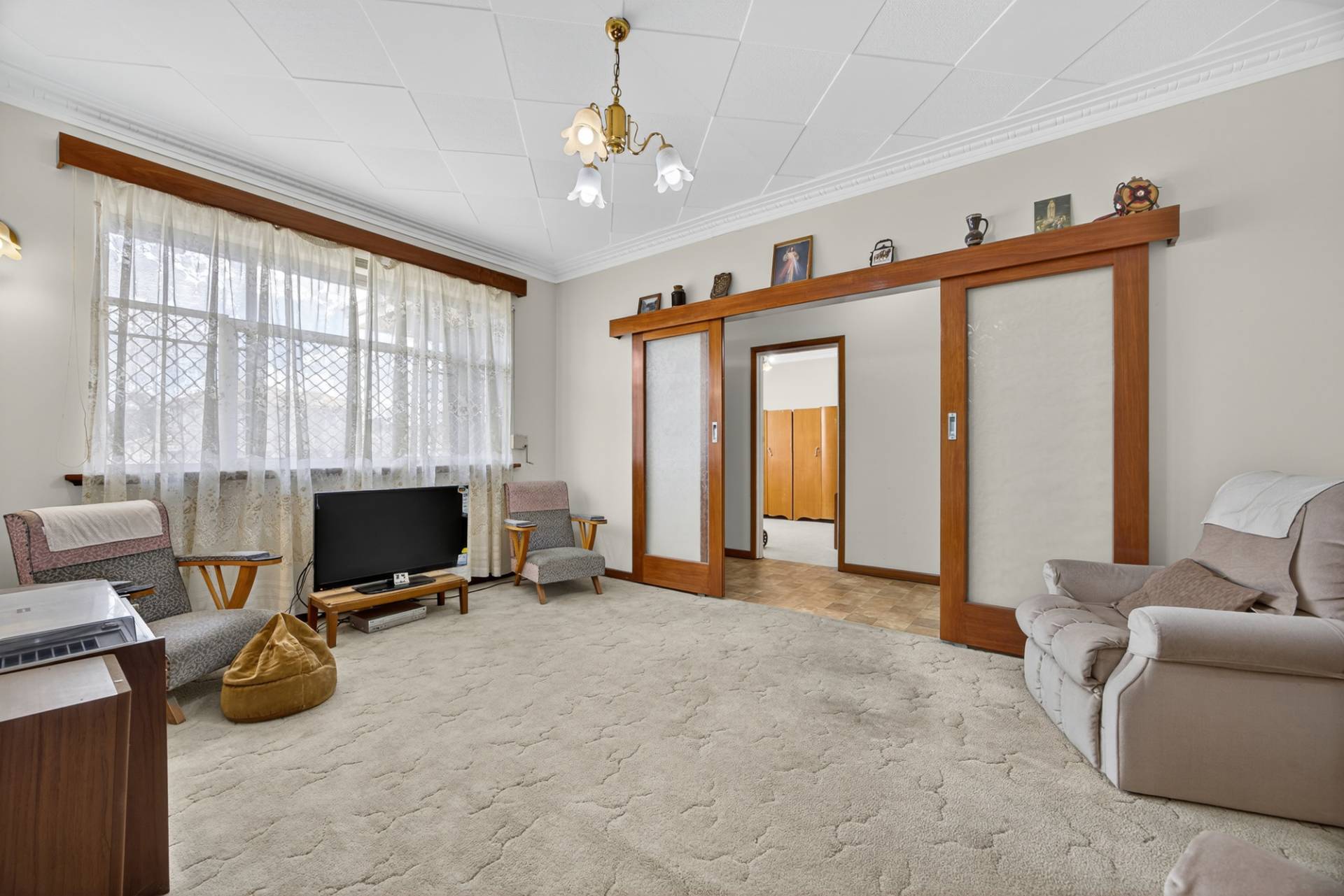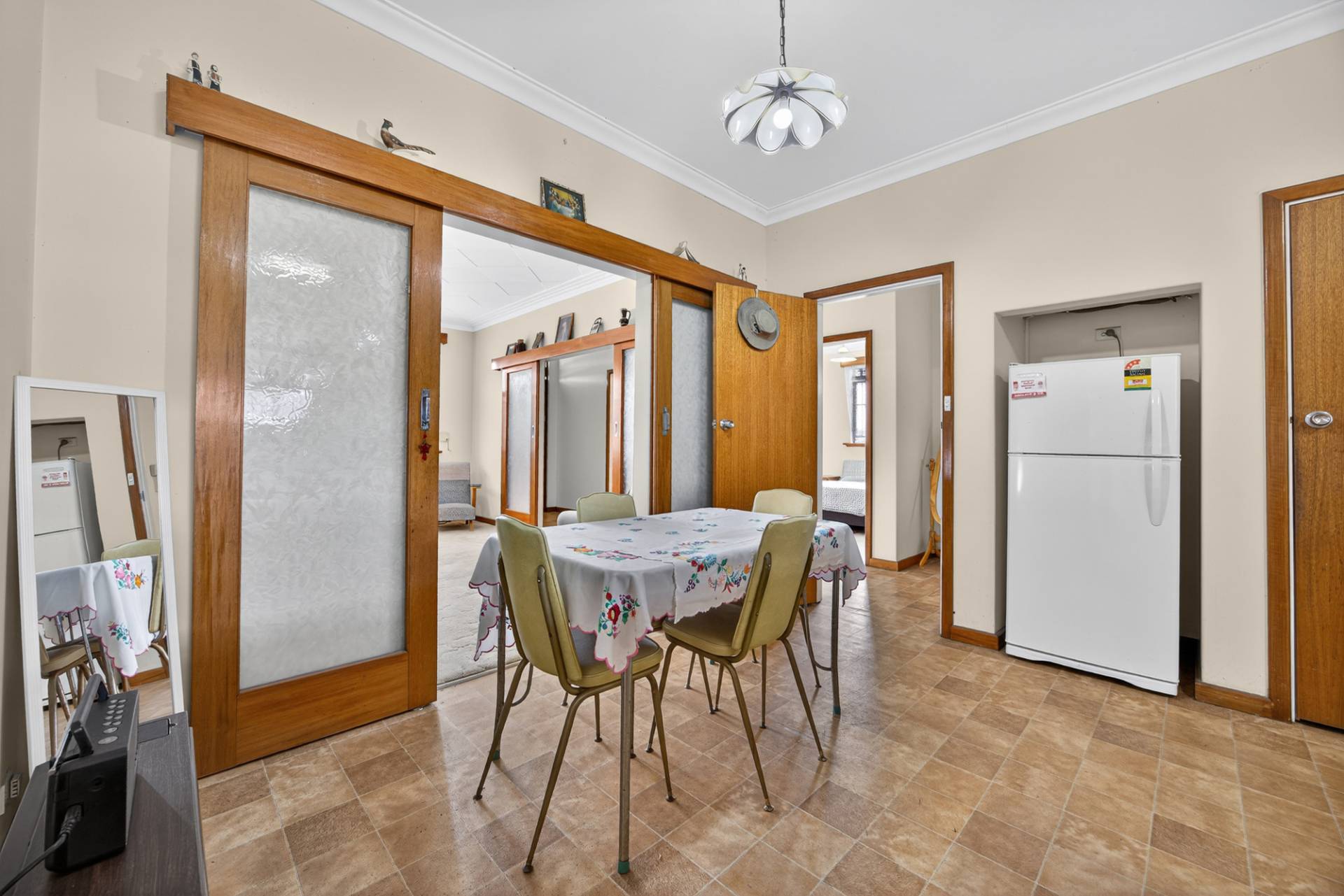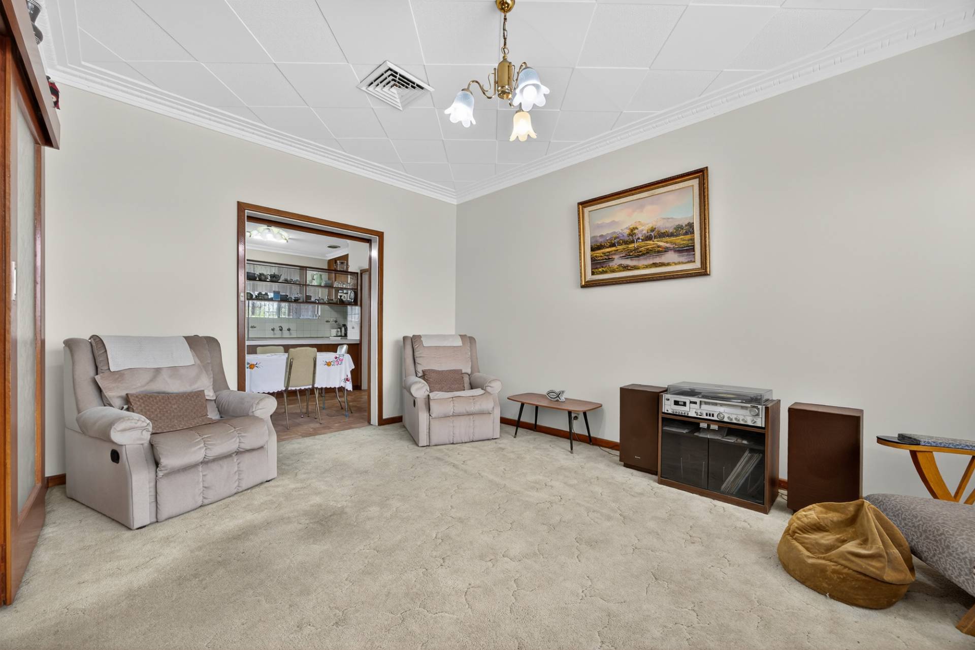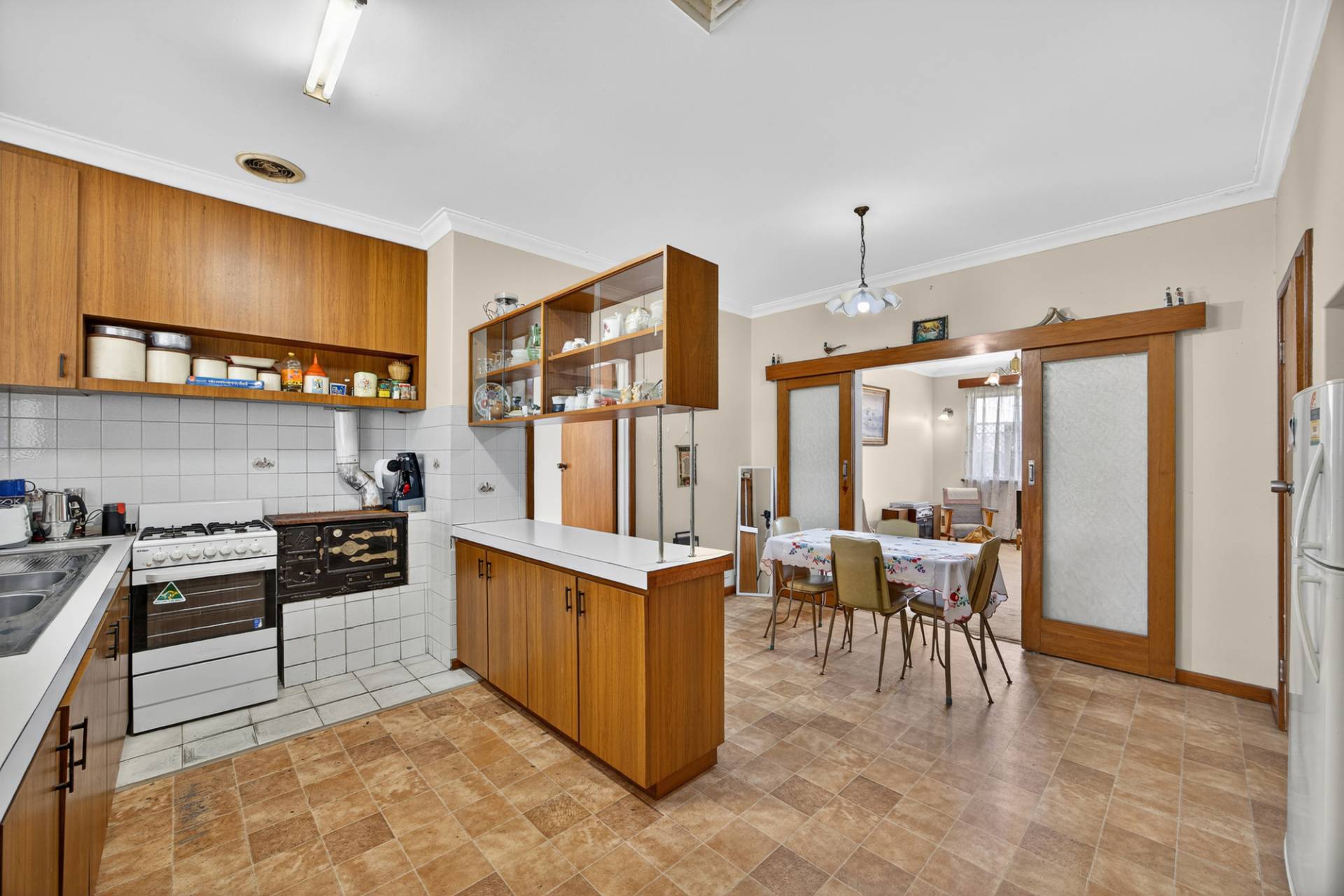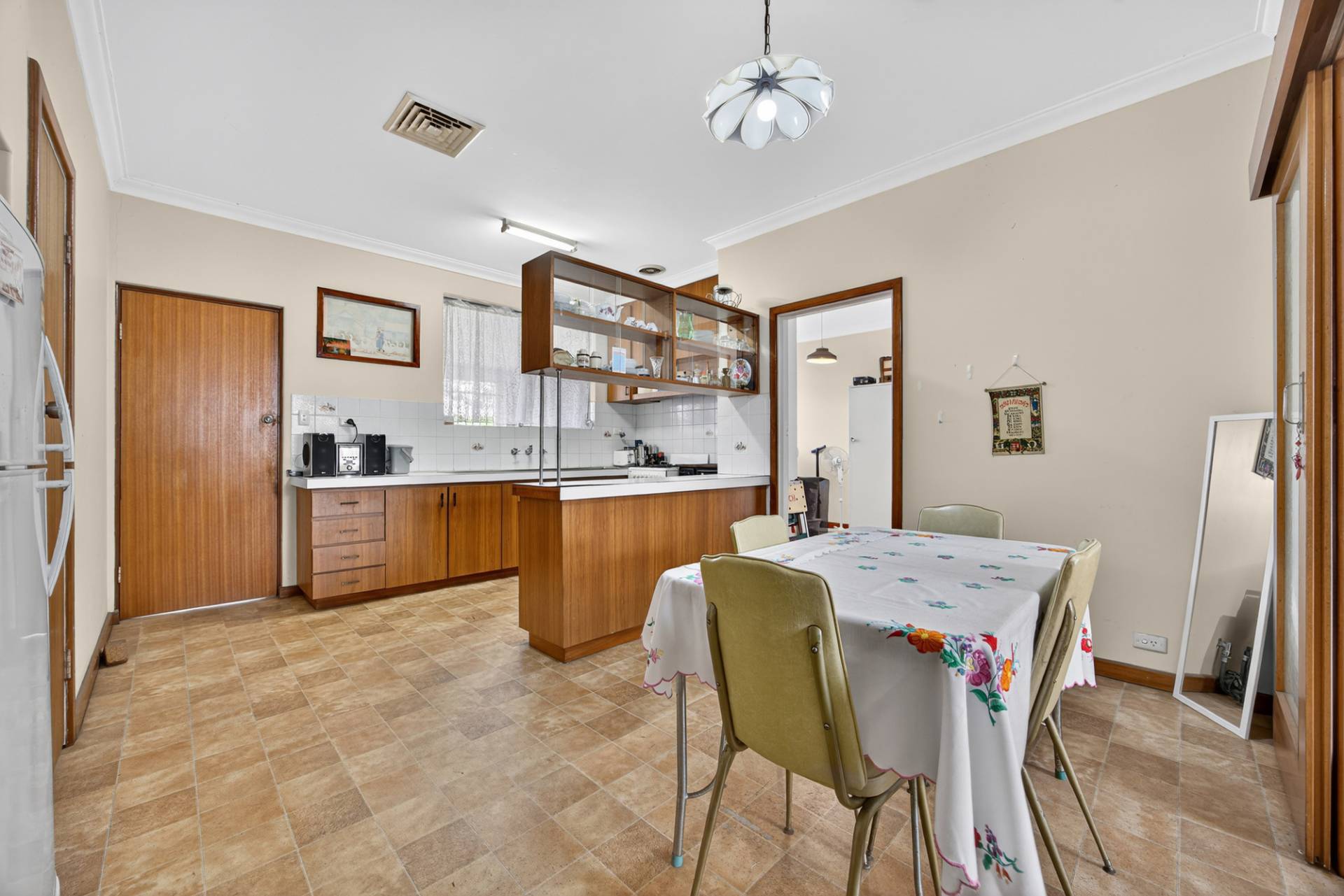 At the front of the property, youll find a cosy carpeted living room complete with sliding doors. The layout flows easily through to the dining and kitchen area, offering an inviting space for relaxed meals or entertaining.
