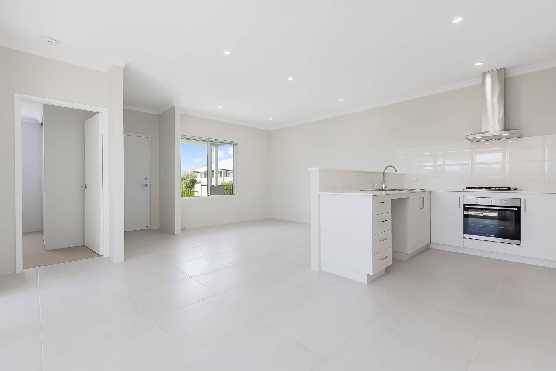 Tiled living areas flow effortlessly to a private courtyard via sliding doors, creating a seamless connection between indoor and outdoor spaces. The home also features a practical, decent-sized laundry and a well-presented frontage that complements its modern design.