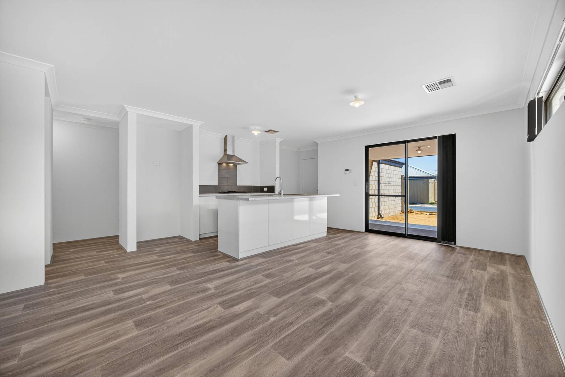 At the heart of the home, the open plan kitchen, dining, and living area seamlessly extends to the alfresco, creating the perfect setting for easy entertaining or quiet relaxation. Large sliding doors invite natural light and breeze, while ducted reverse cycle air conditioning keeps the home comfortable all year round.