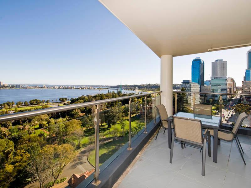 Located on the 12th floor, it boasts sweeping views of the Swan River, quality finishes, and easy access to the best of Perth CBD.