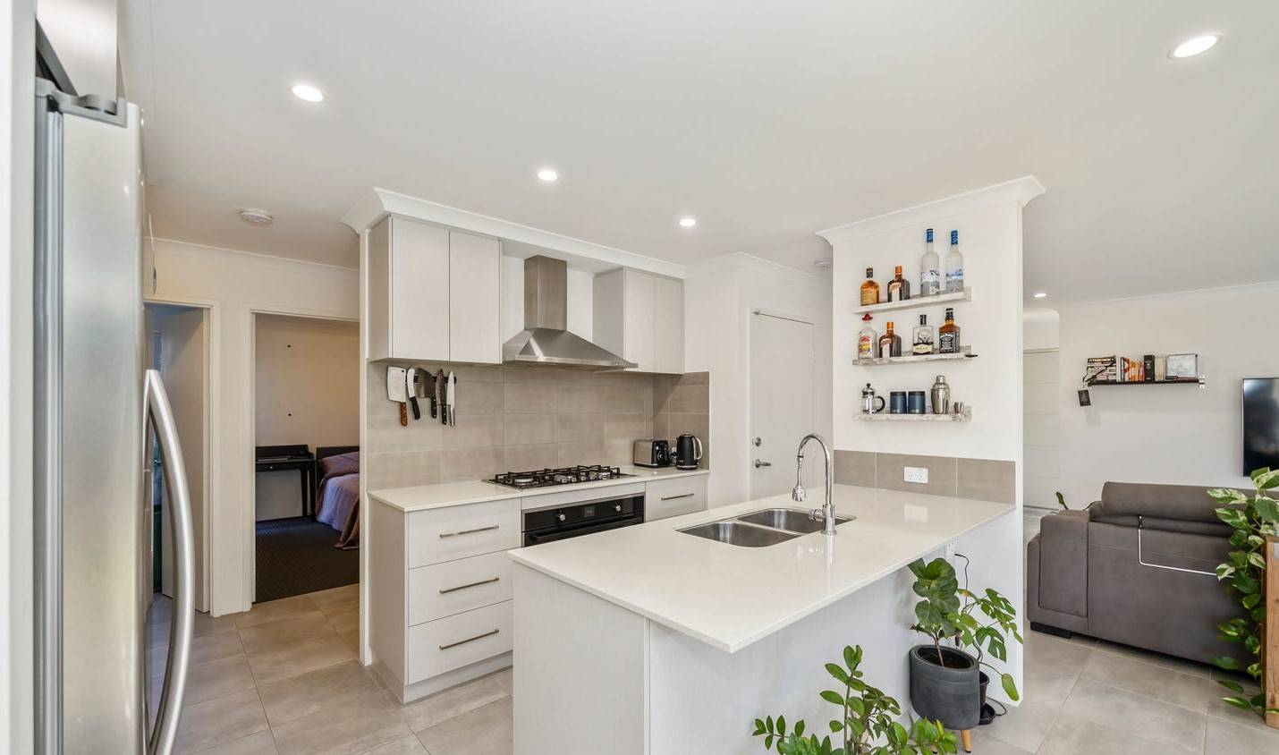 Inside, the clever floorplan maximizes space and natural light. The open plan kitchen, dining, and living area flows seamlessly to the garden and pool, making entertaining effortless. The chefs kitchen features stone benchtops, ample cupboard space, and 900mm stainless steel appliances.