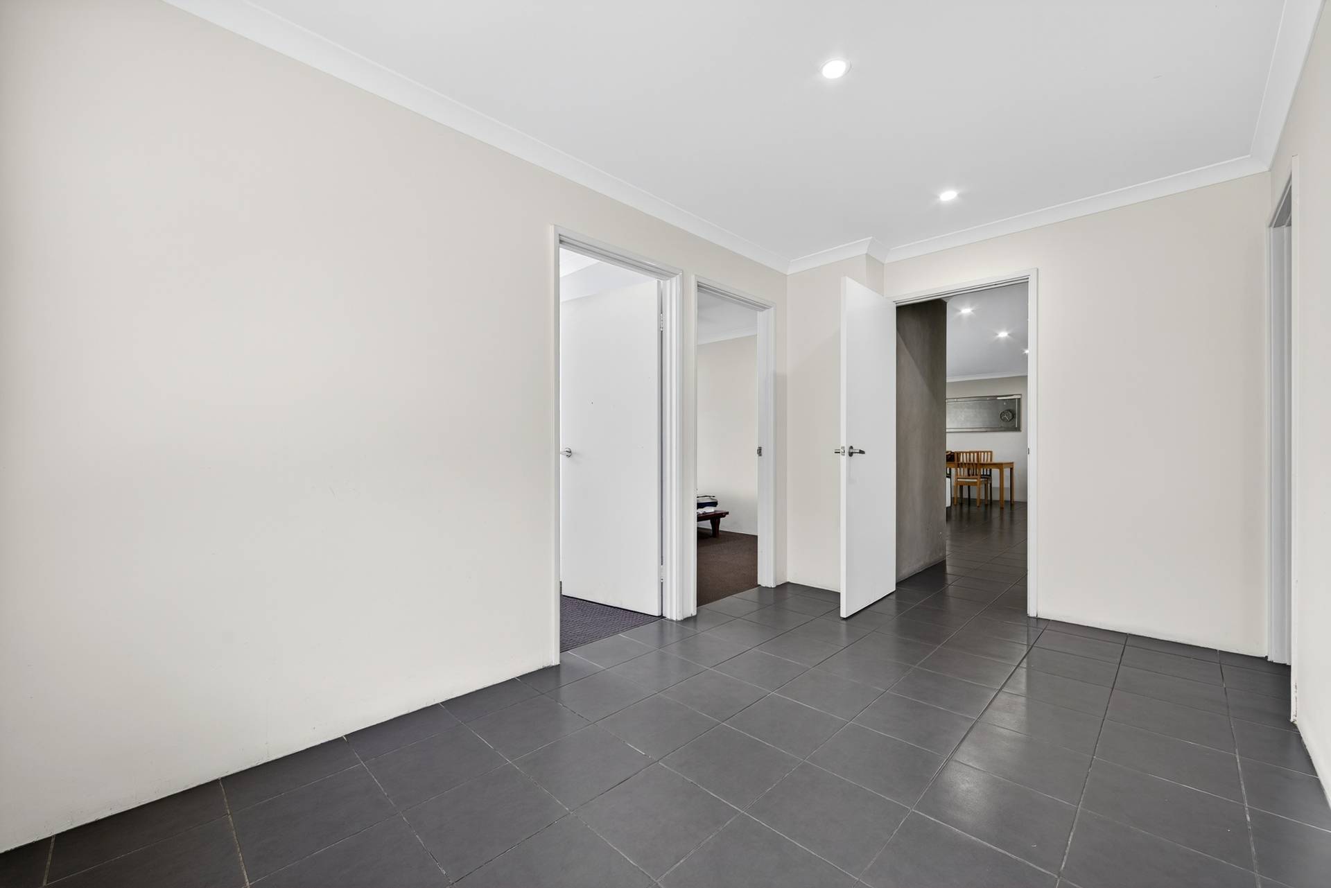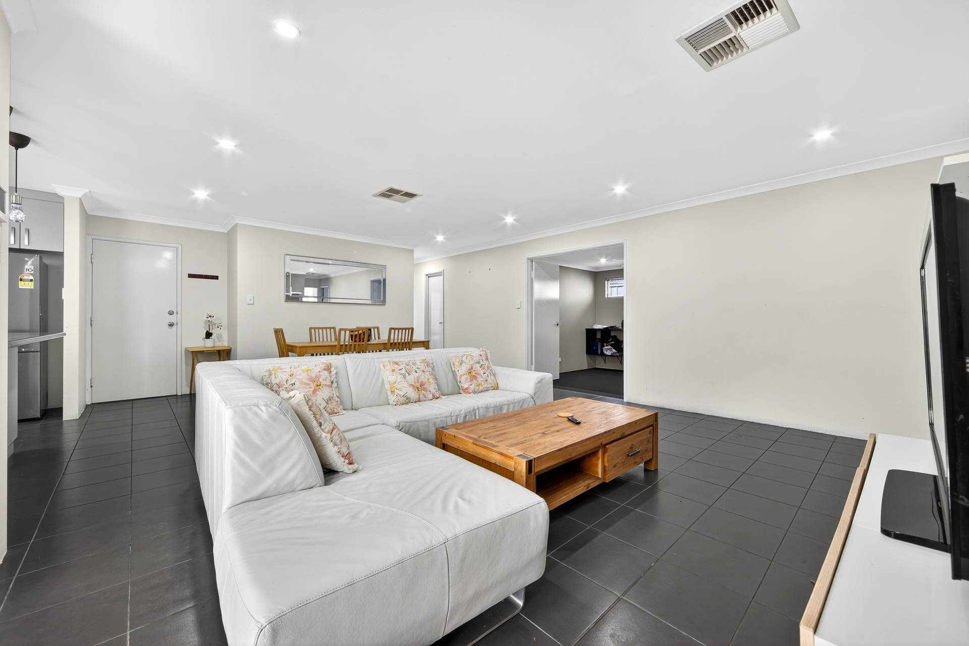 Tiled open plan family, living, meals area