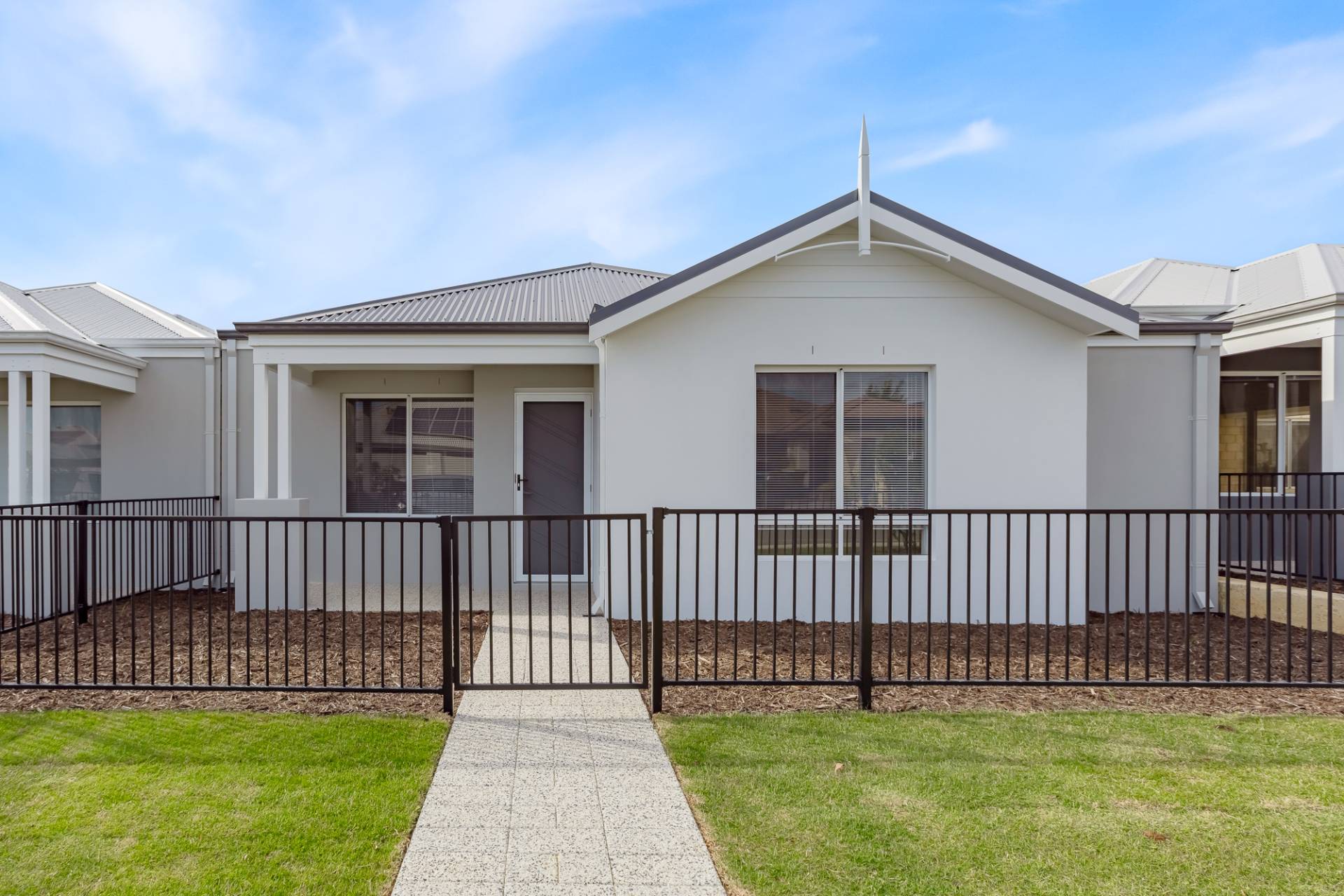 Experience modern living at its best in this brand new three bedroom, two bathroom home, located in the heart of Alkimos. Every detail has been thoughtfully considered, creating a space thats both stylish and practical, perfect for those who want a fresh, move-in-ready home without compromise. The master bedroom offers plush carpet, a generous built in robe, and a private ensuite, while the other bedrooms are comfortable and functional, featuring built in storage and access to the sleek main bathroom. The kitchen is tidy, practical, and modern, with white cabinetry, a pantry, and a gas stove and oven. Tiled living areas extend seamlessly to the courtyard, allowing natural light to flood the home and providing an inviting space to relax or entertain outdoors. A decent sized laundry adds to the functional appeal, while the neat frontage ensures the home makes a lasting impression from the street.
