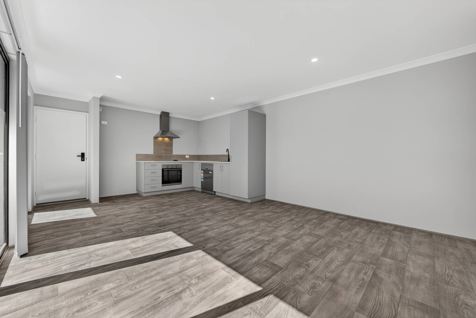Step into a light-filled open-plan layout featuring a modern kitchen, with quality appliances.