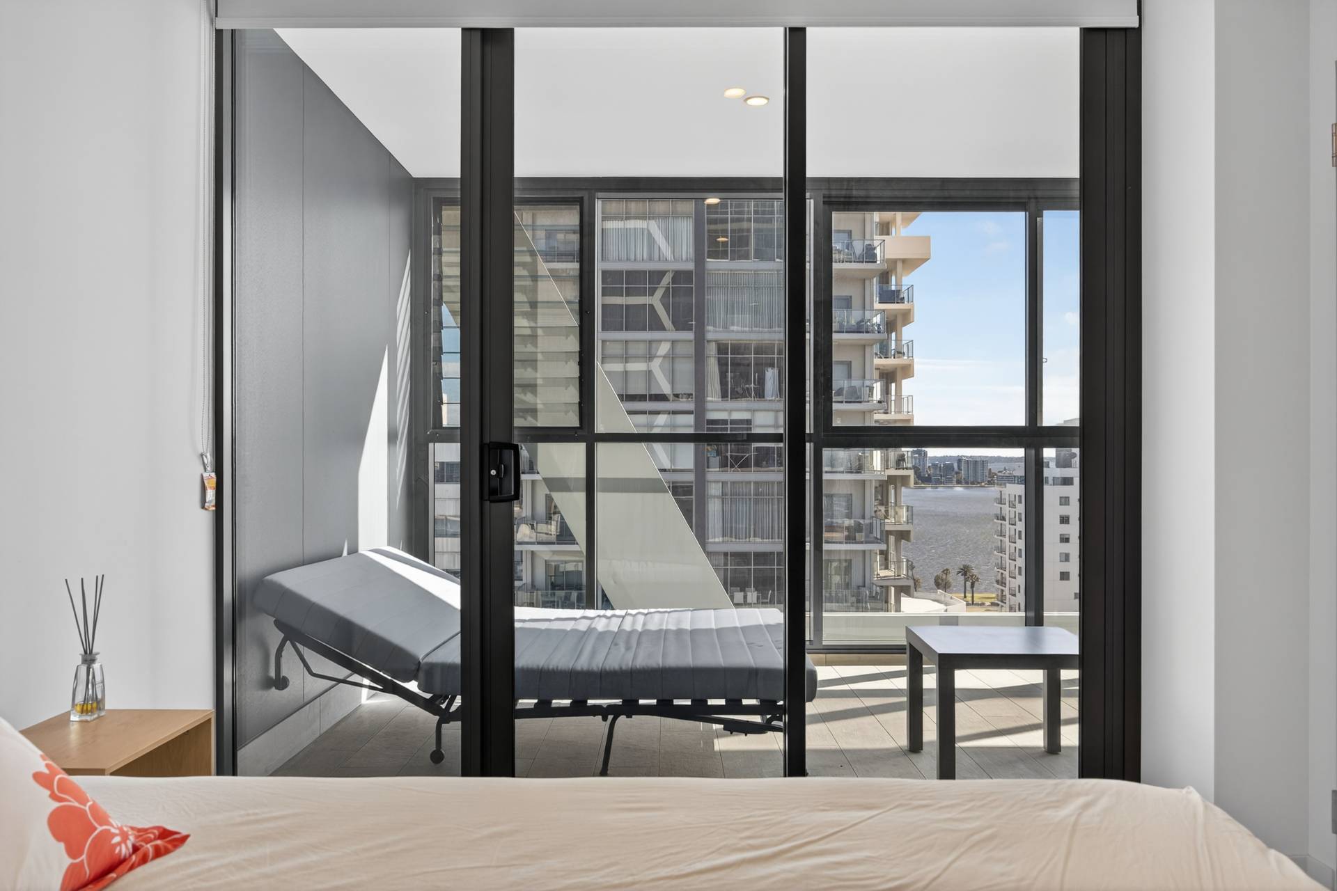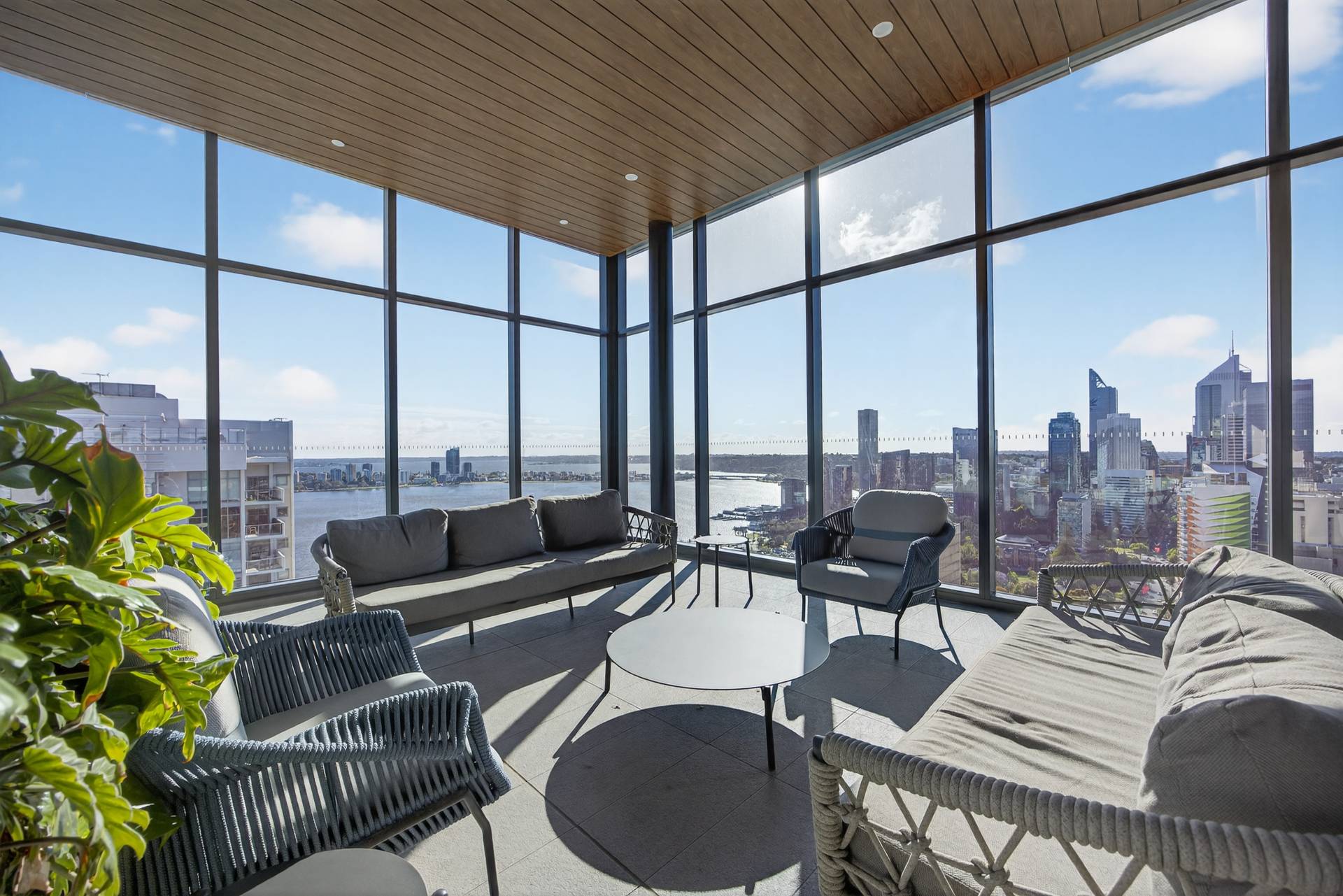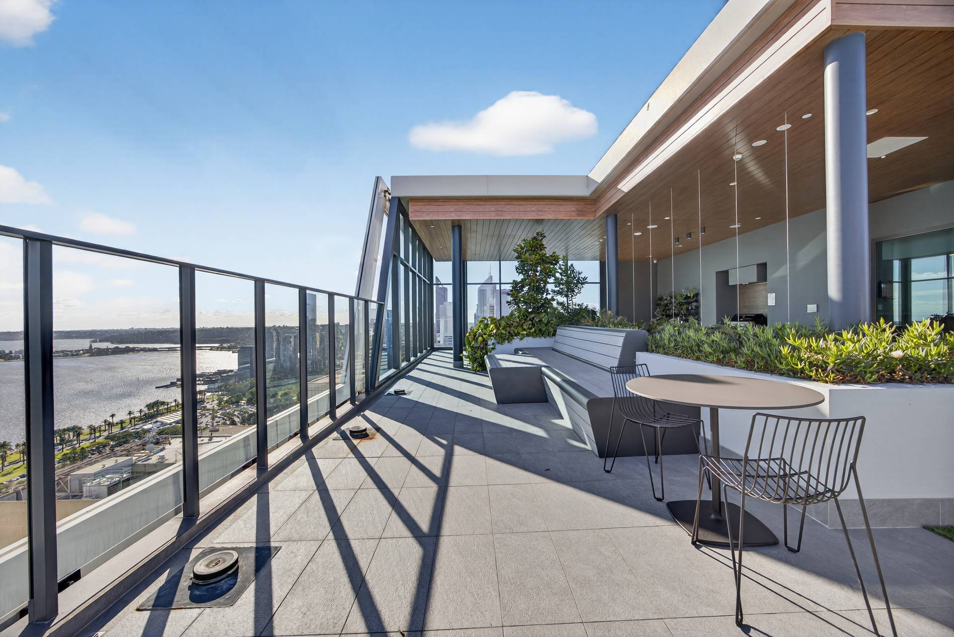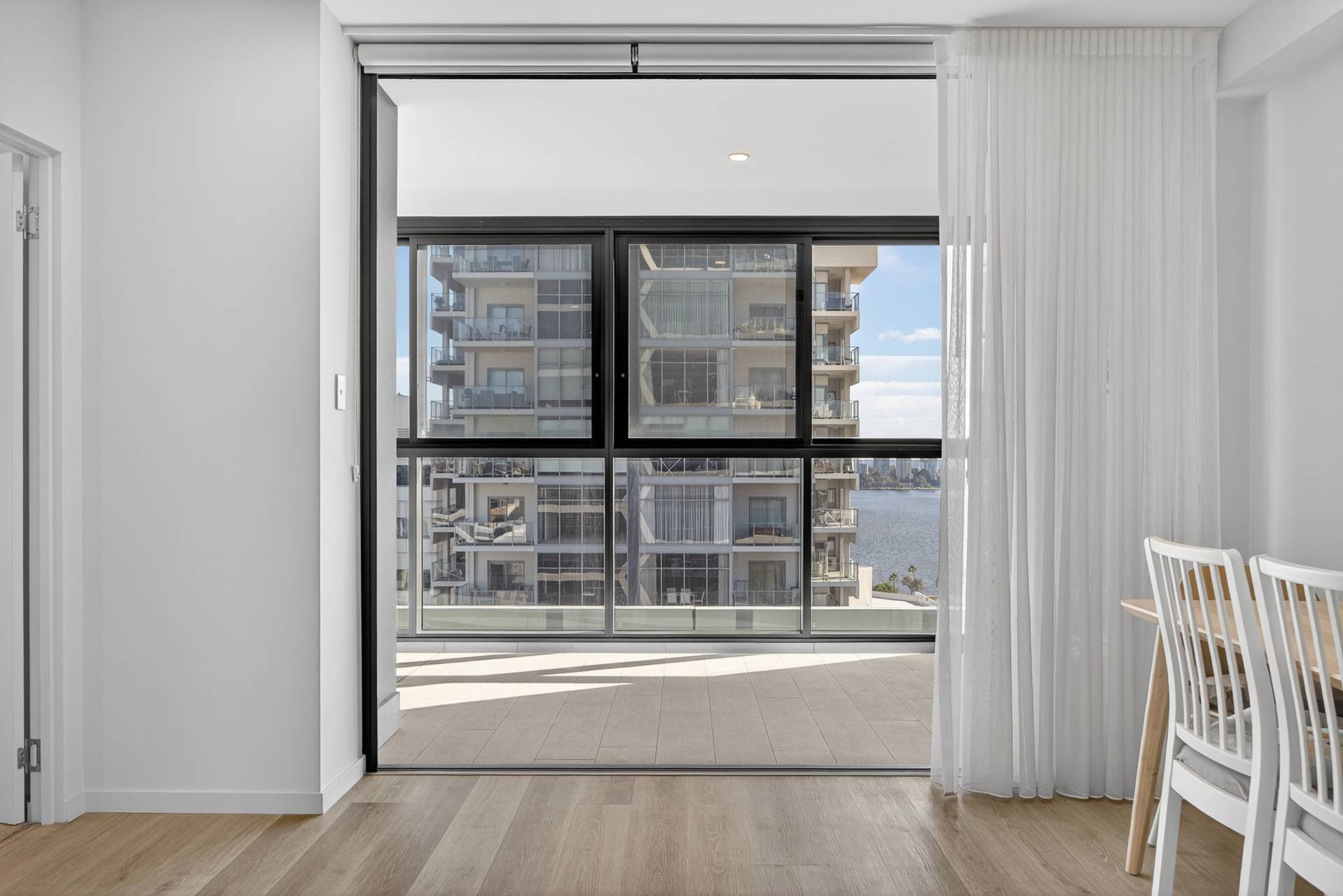 Situated on the 14th floor, this thoughtfully designed one-bedroom, one-bathroom apartment spans approximately 65 sqm of efficient living area. It boasts premium finishes, smart technology, and stunning views of Optus Stadium, making it perfect for investors or future homeowners.