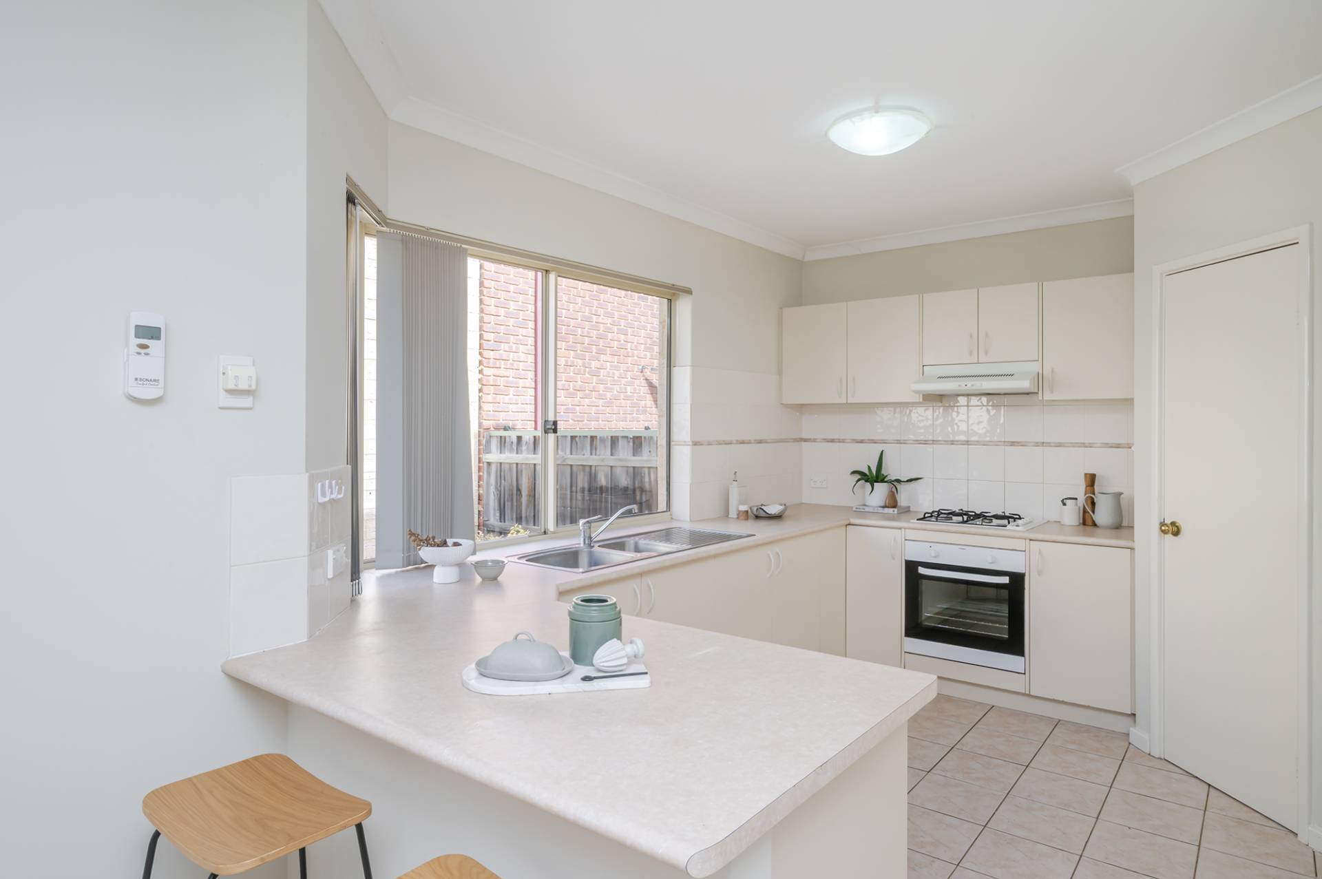 • Kitchen with stainless steel appliances, ample bench space and gas cooktop