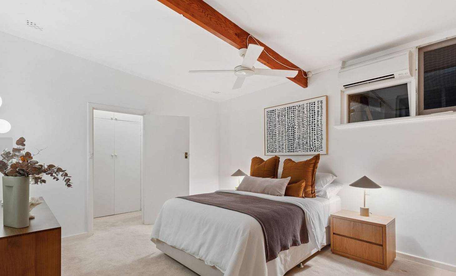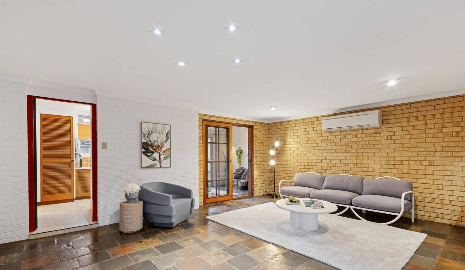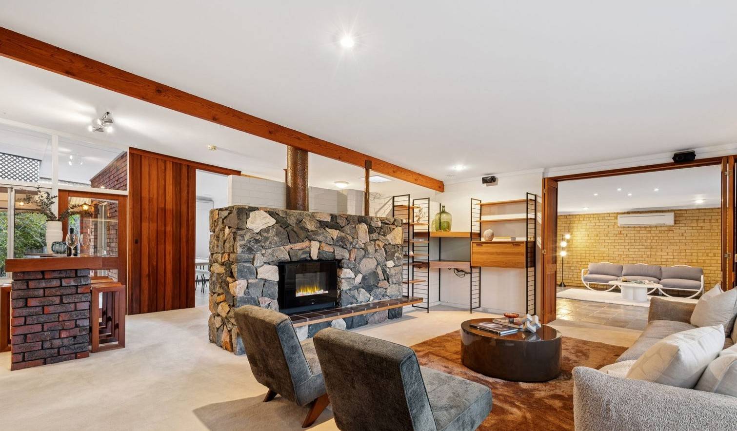 Step into a warm and inviting home that perfectly blends mid-century charm with modern comfort.