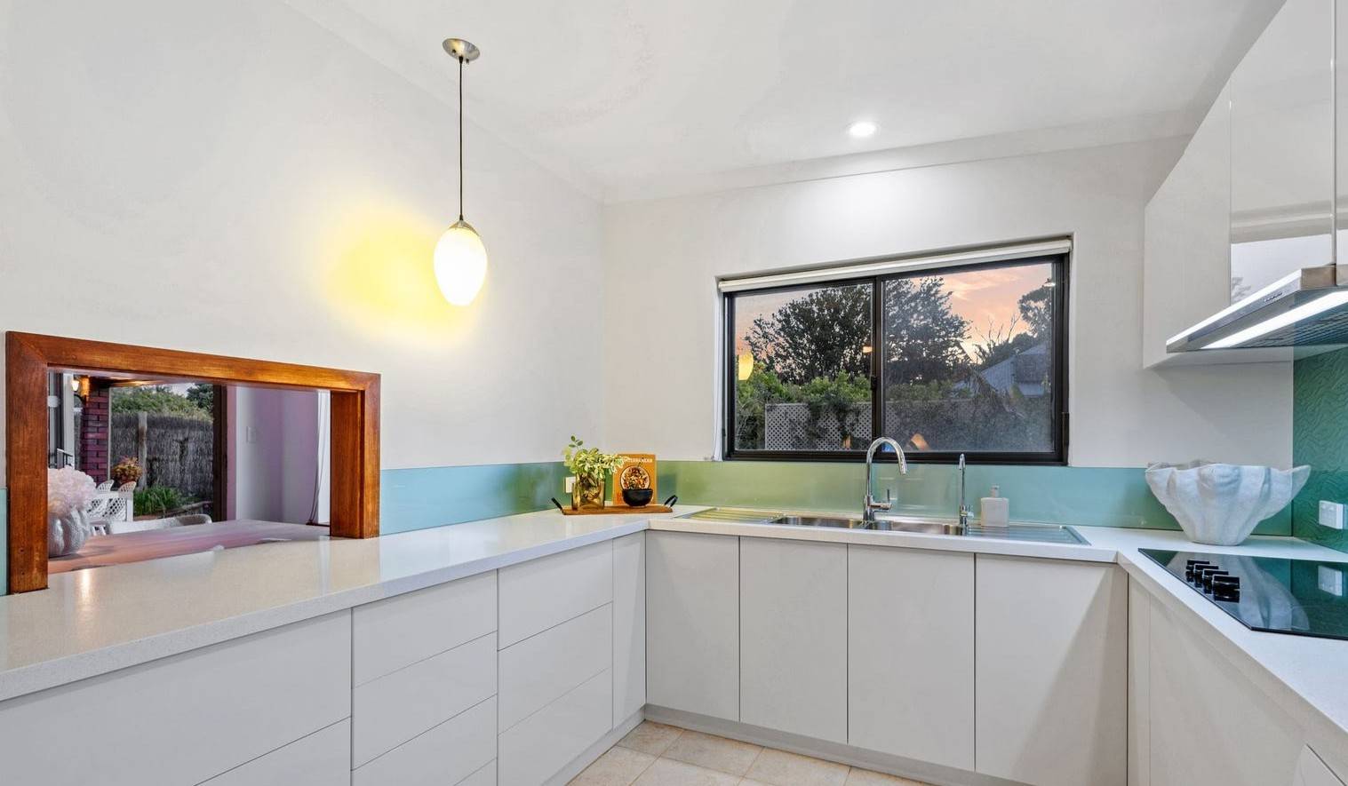 The updated kitchen combines modern convenience with timeless style, while the bathrooms retain their original mid-century tileworkadding a unique touch of charm.