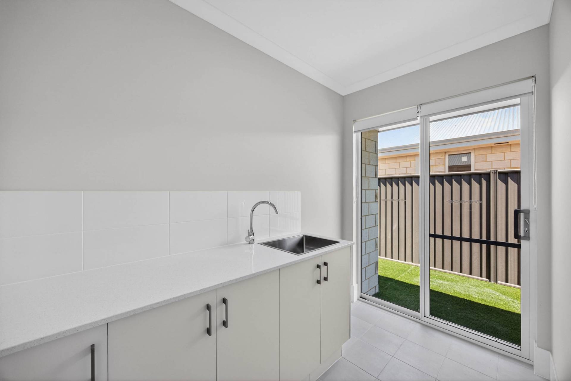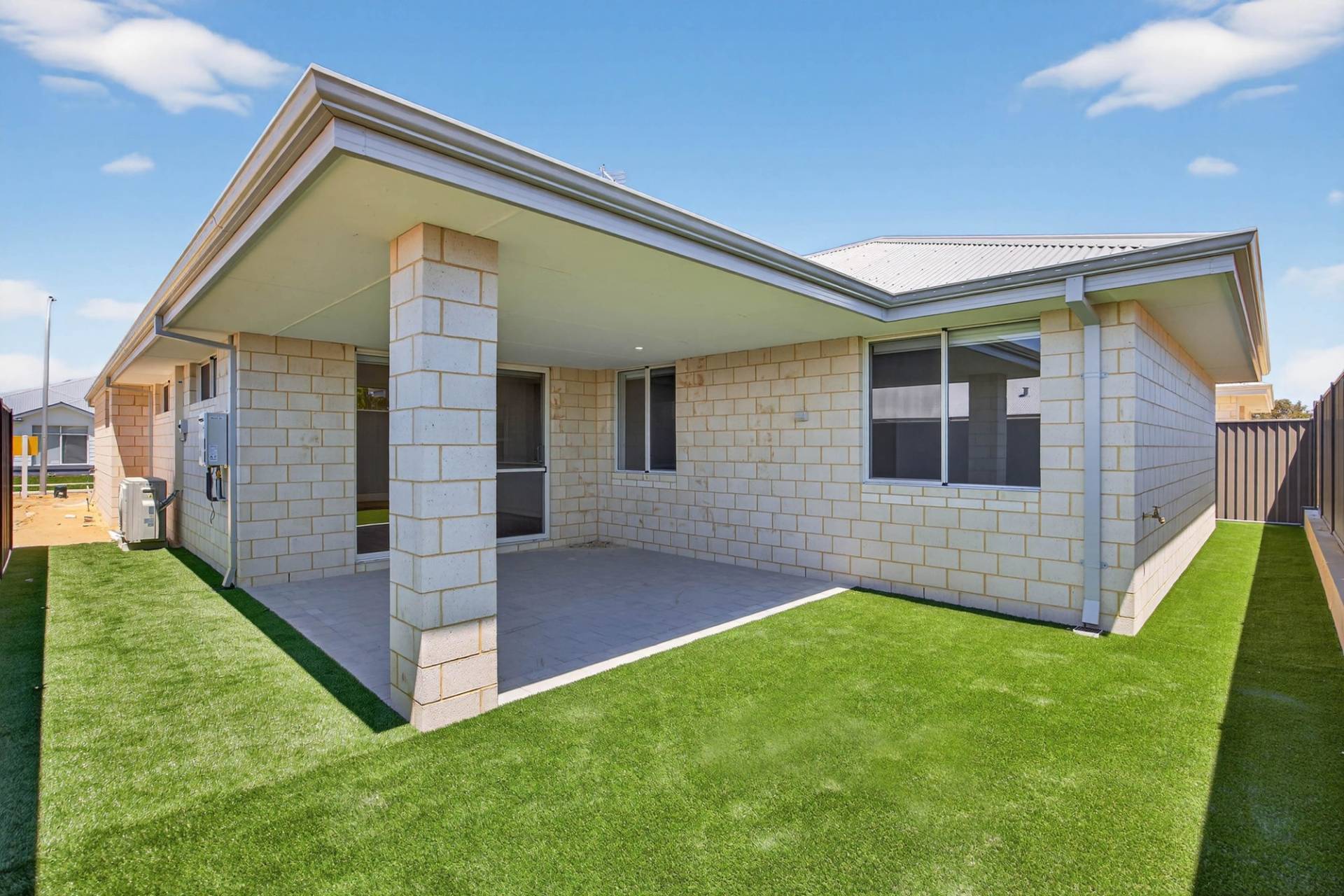 -Outdoor alfresco overlooking easy care artificial lawn - perfect for entertaining or a quiet morning coffee.
