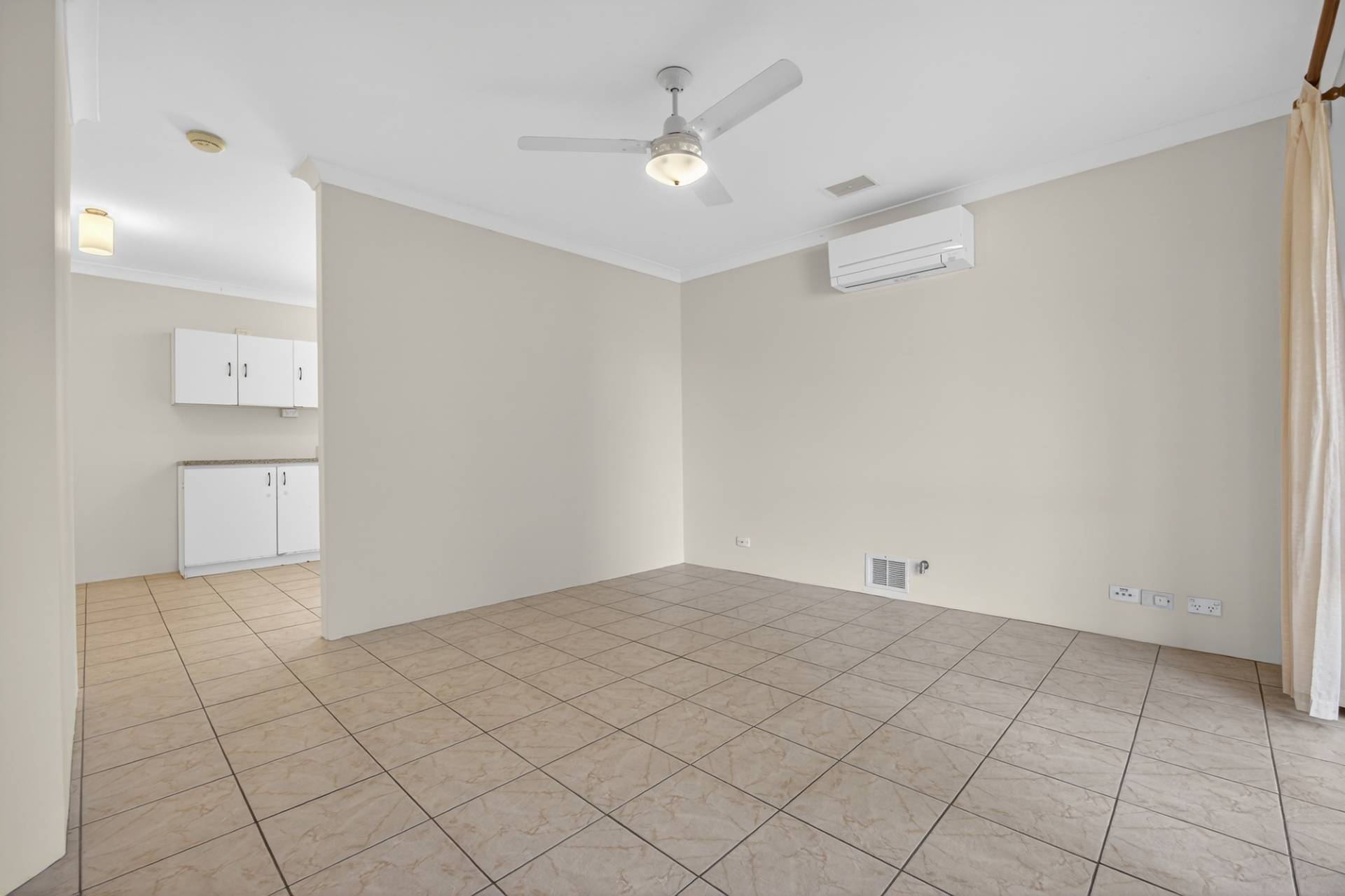 - Reverse cycle split system air conditioning and ceiling fan in lounge