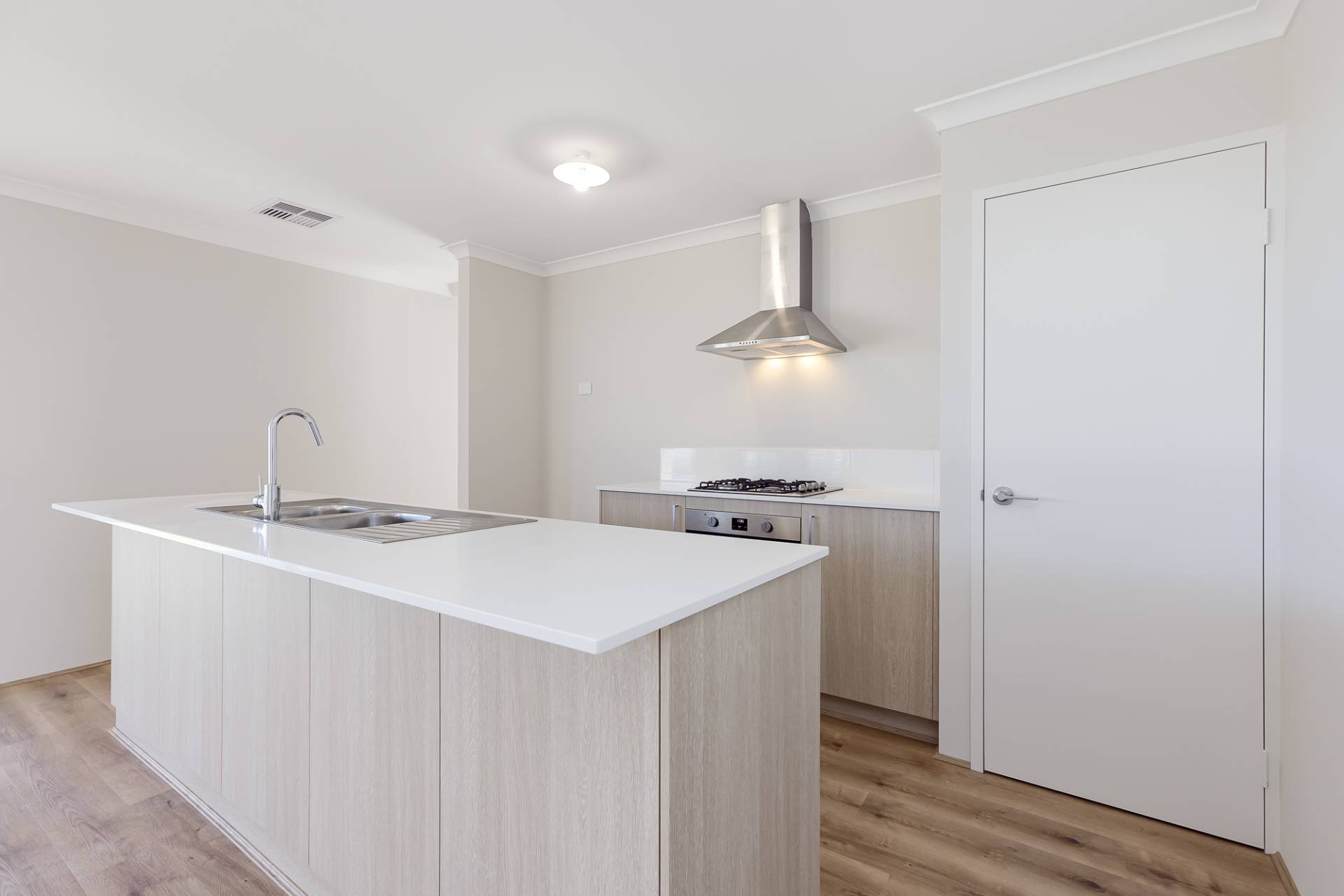 - Stylish kitchen with large gas cooktop, oven and stone benchtops