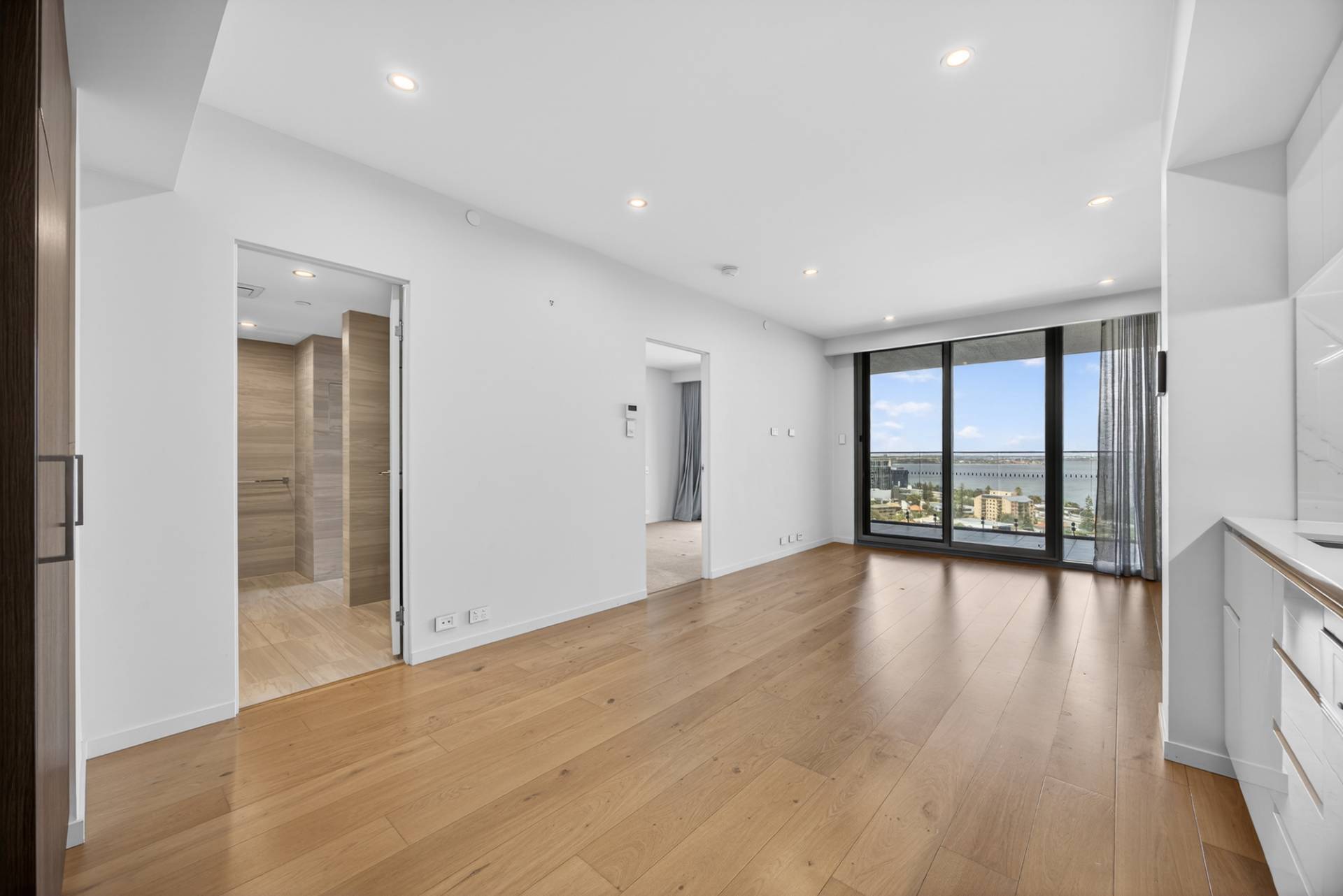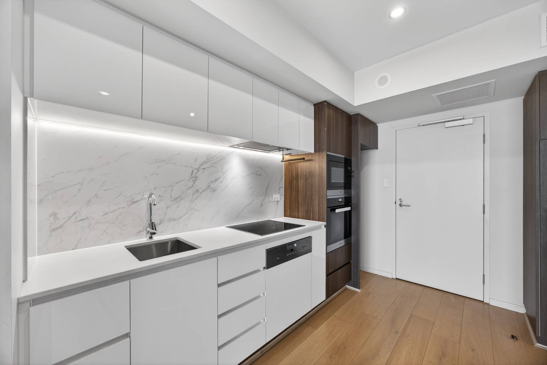 Situated on the 16th floor, this stylish apartment offers a contemporary open-plan layout seamlessly combining the living, dining and kitchen areas. The well-appointed kitchen is fitted with high-quality appliances, creating a refined and functional space ideal for everyday living.