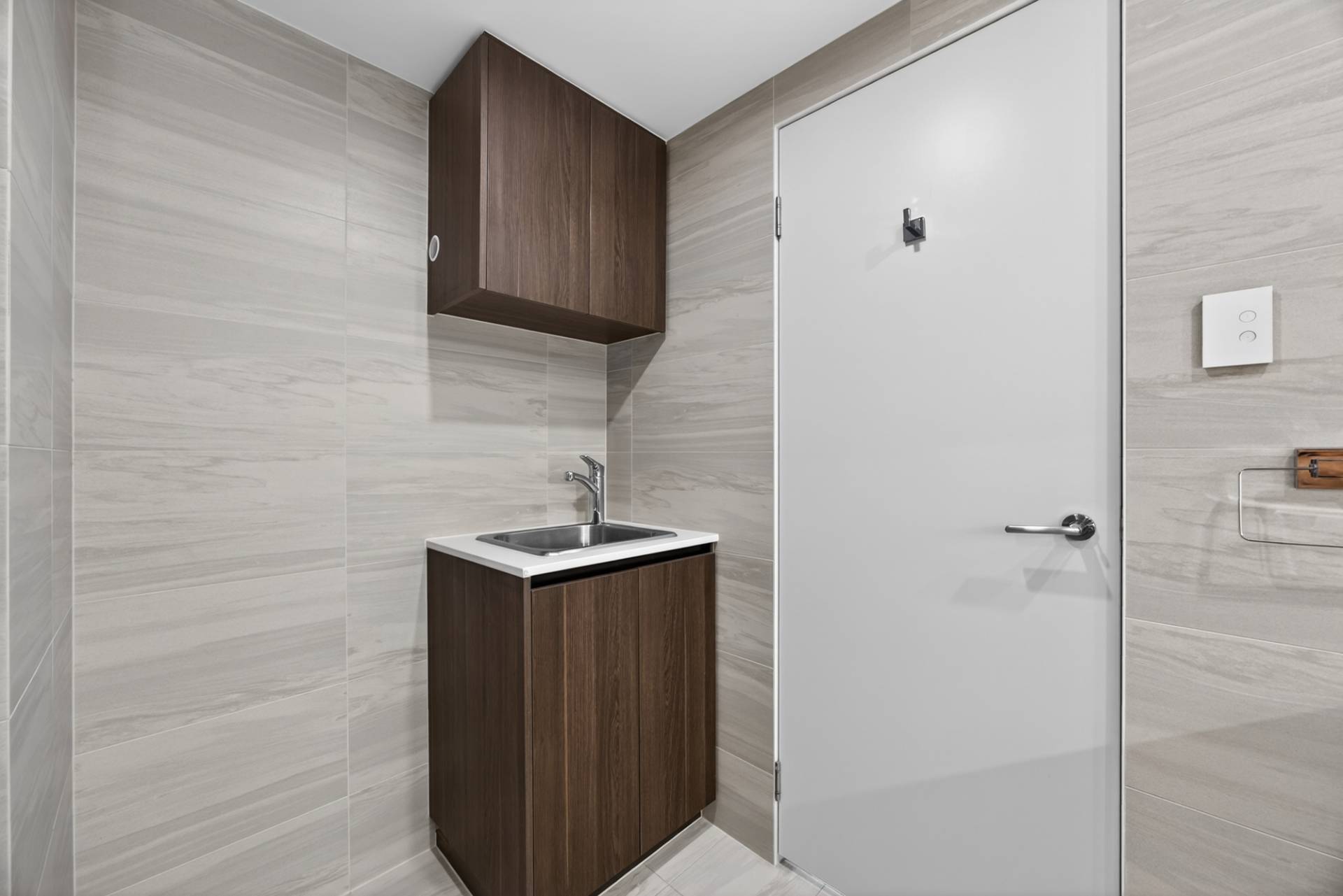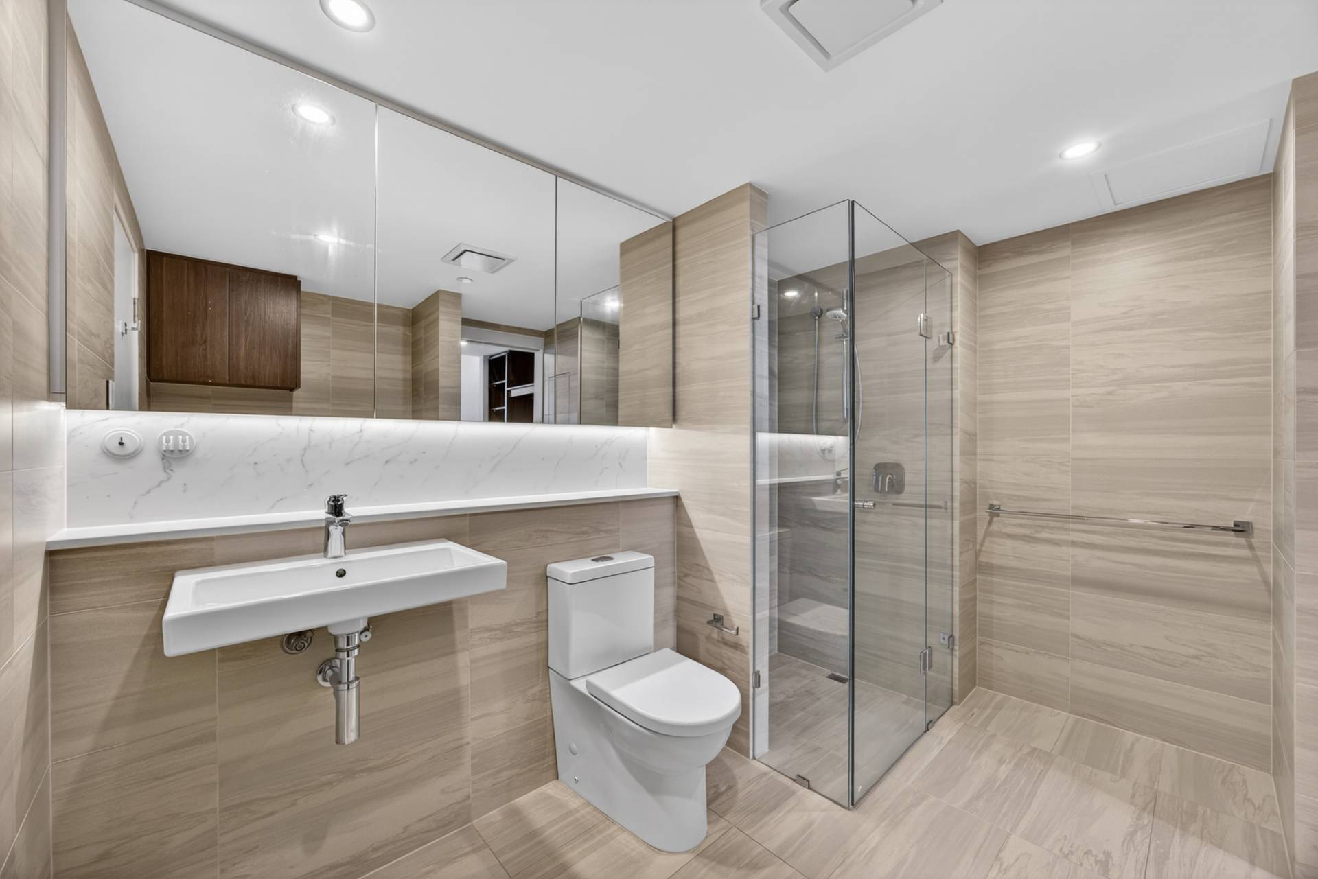 The spacious bathroom features floor-to-ceiling tiling, delivering a sleek and modern finish. The generous bedroom includes a walk-in robe with direct access to the bathroom for added convenience. Completing the apartment is a well-sized balcony, the perfect place to relax and take in the scenic river views.