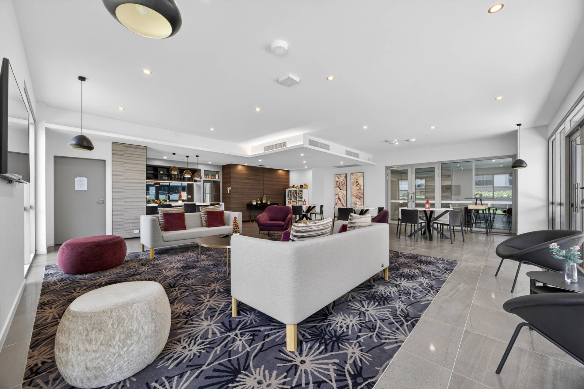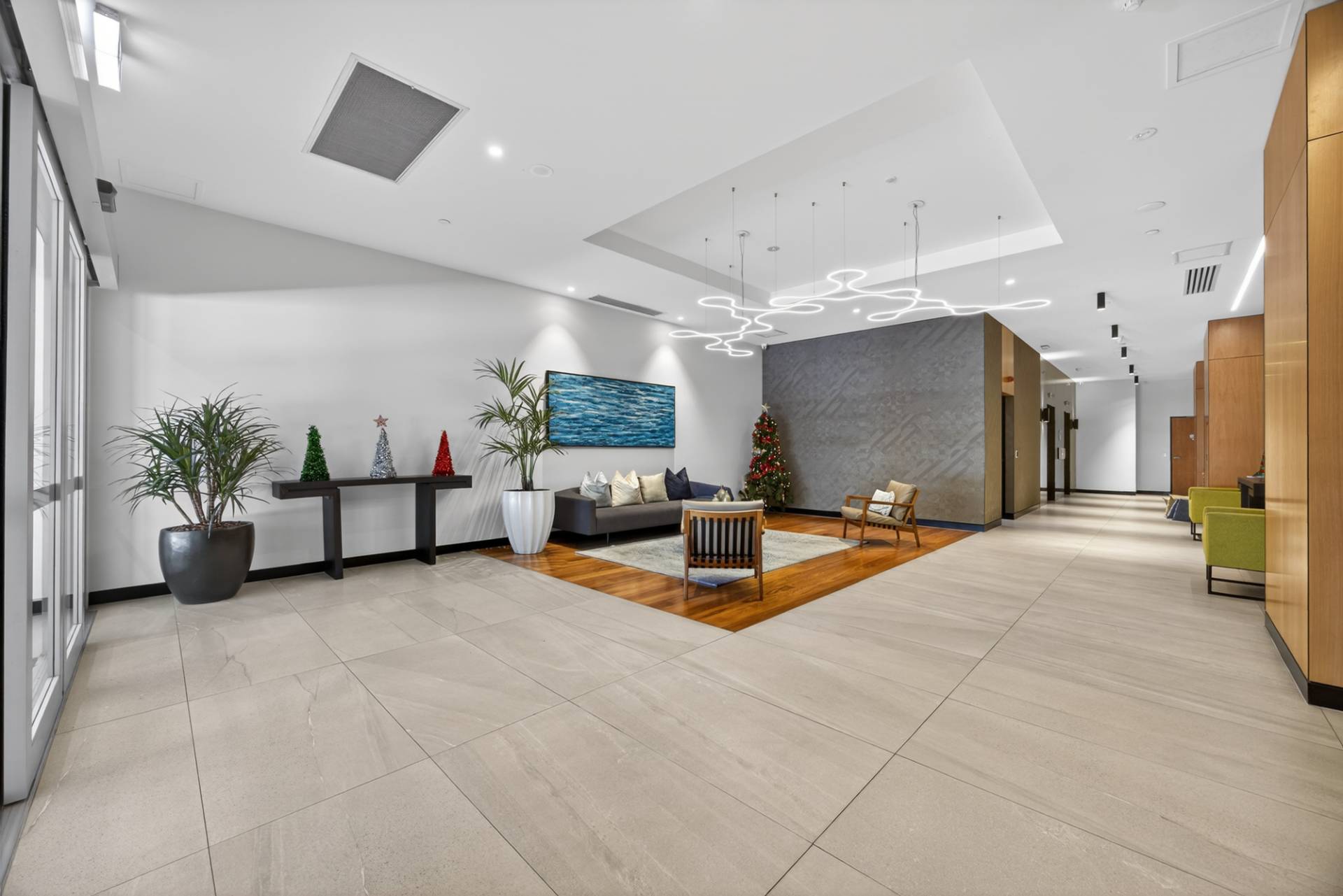 Secure, well-maintained complex with a welcoming entrance and resident lounge