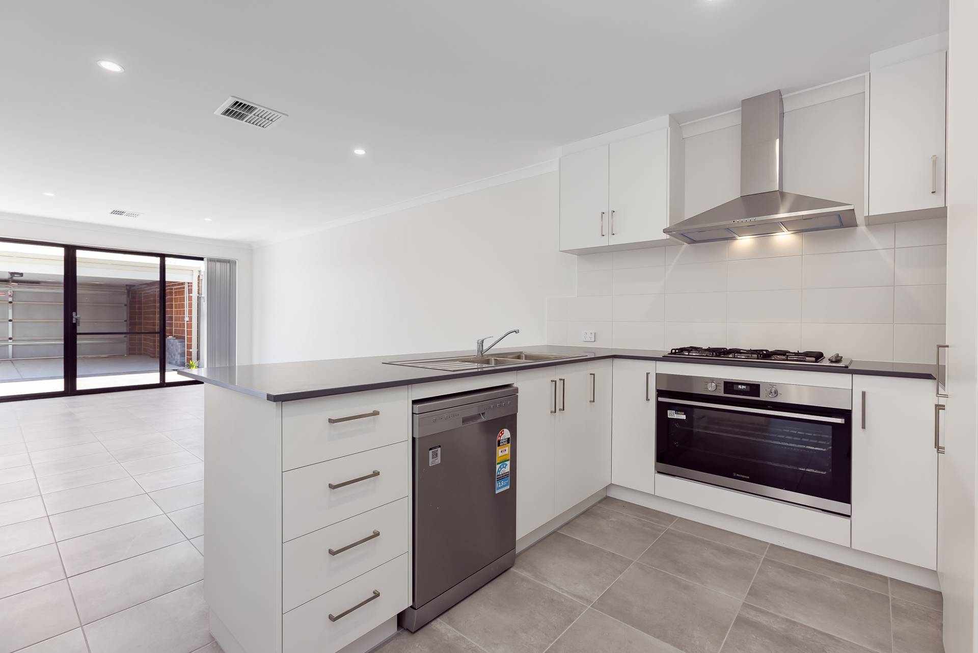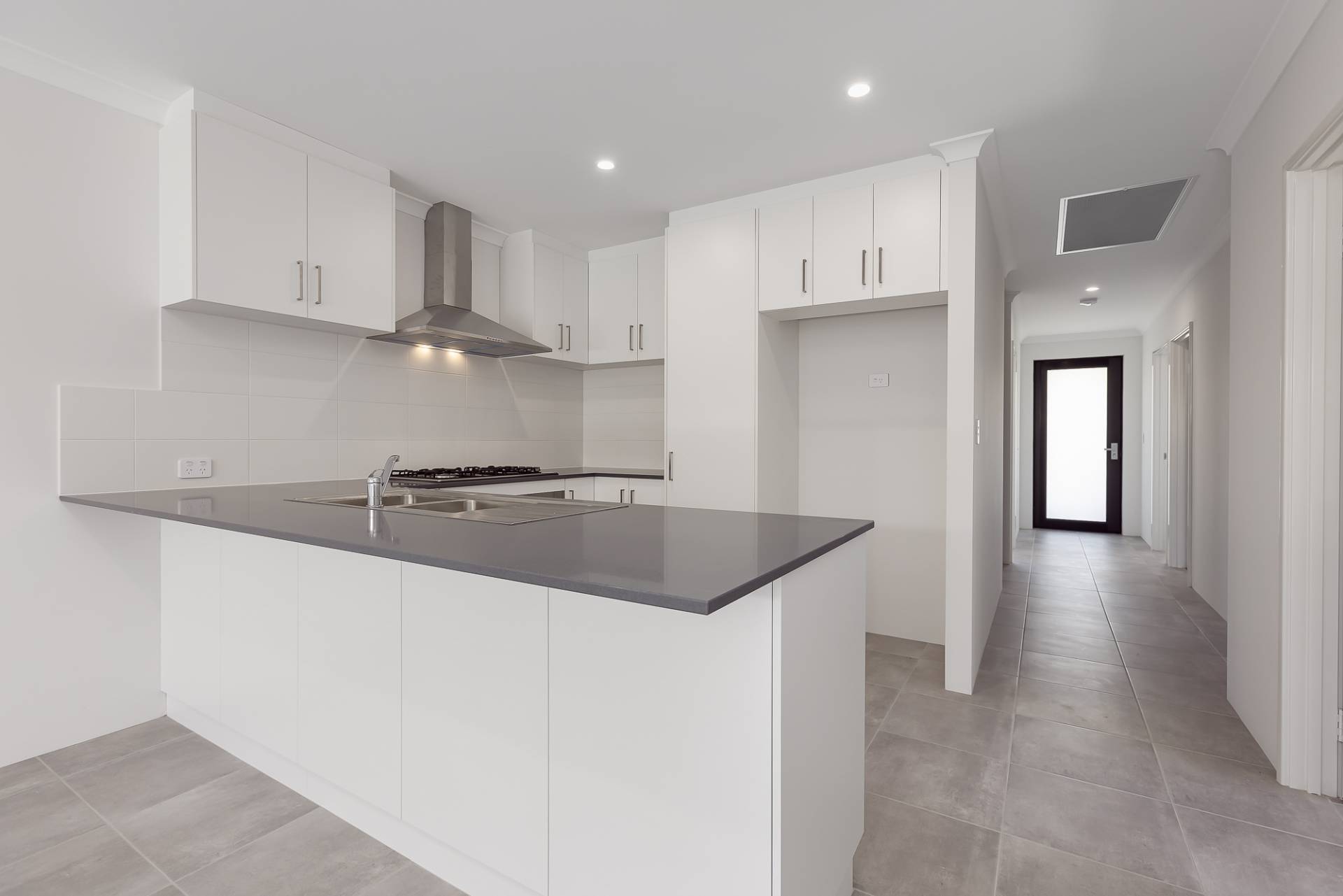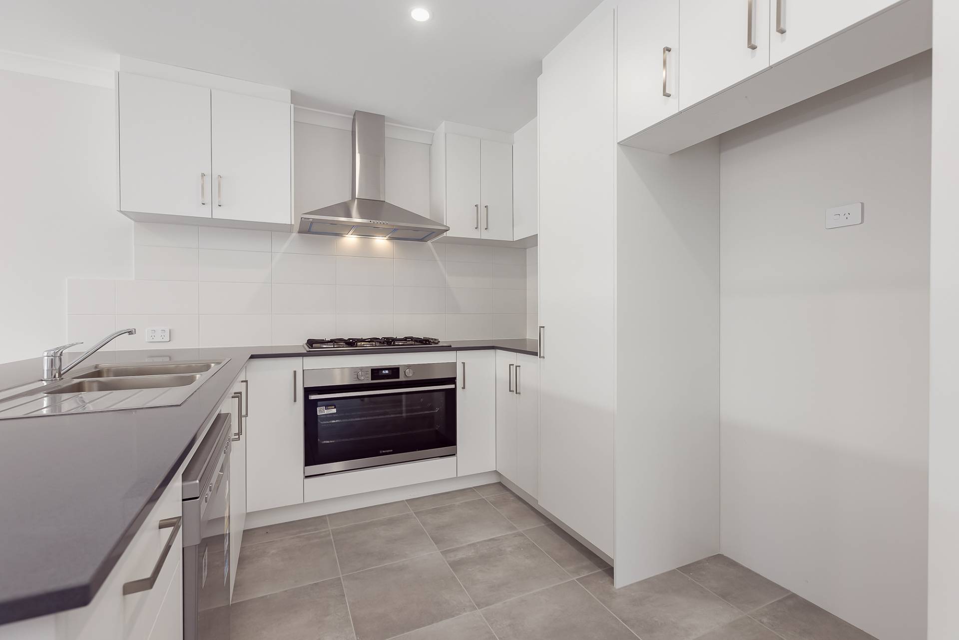 - Modern kitchen with 900mm gas cooktop and oven