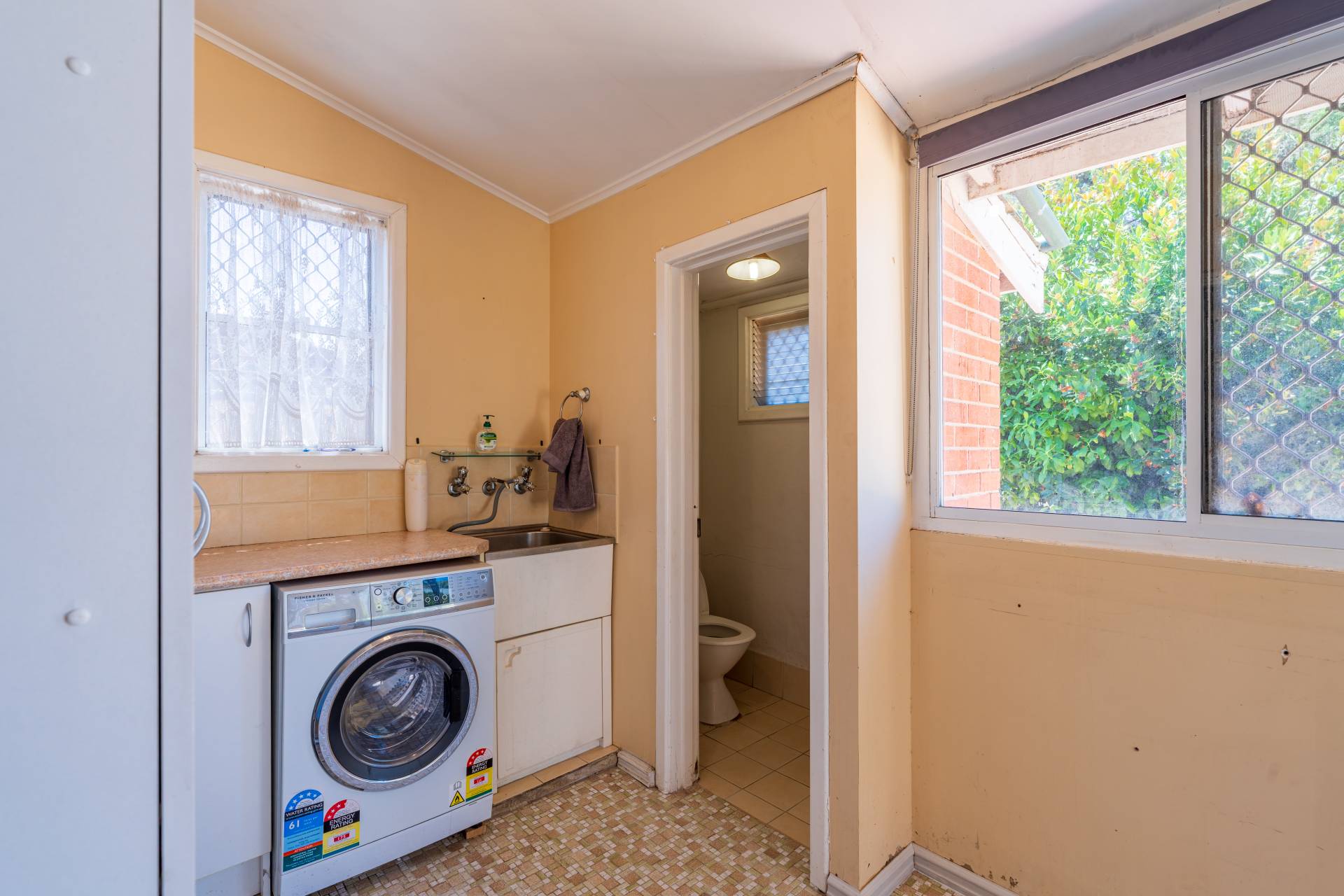 - Separate laundry and toilet