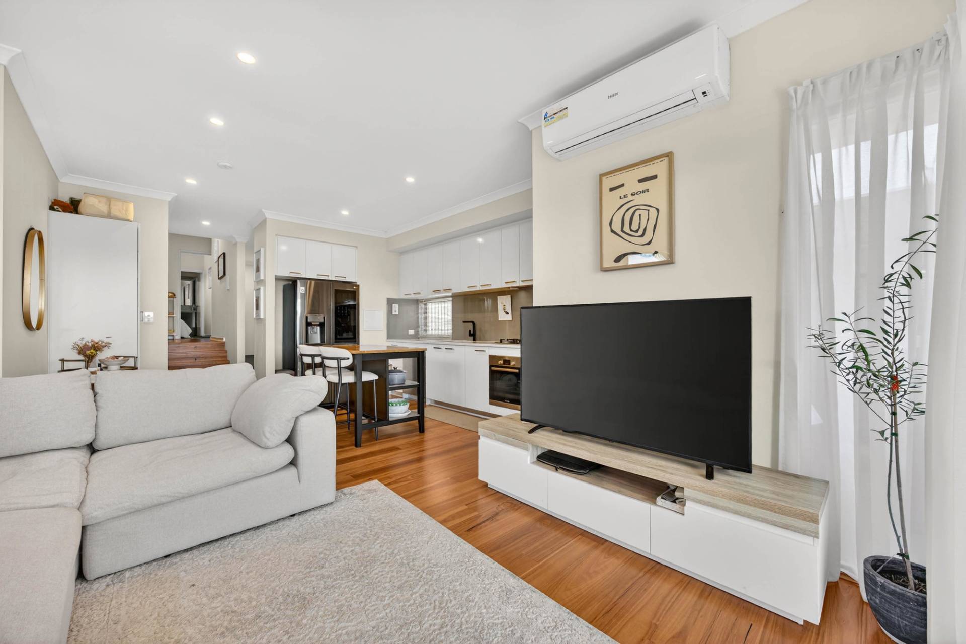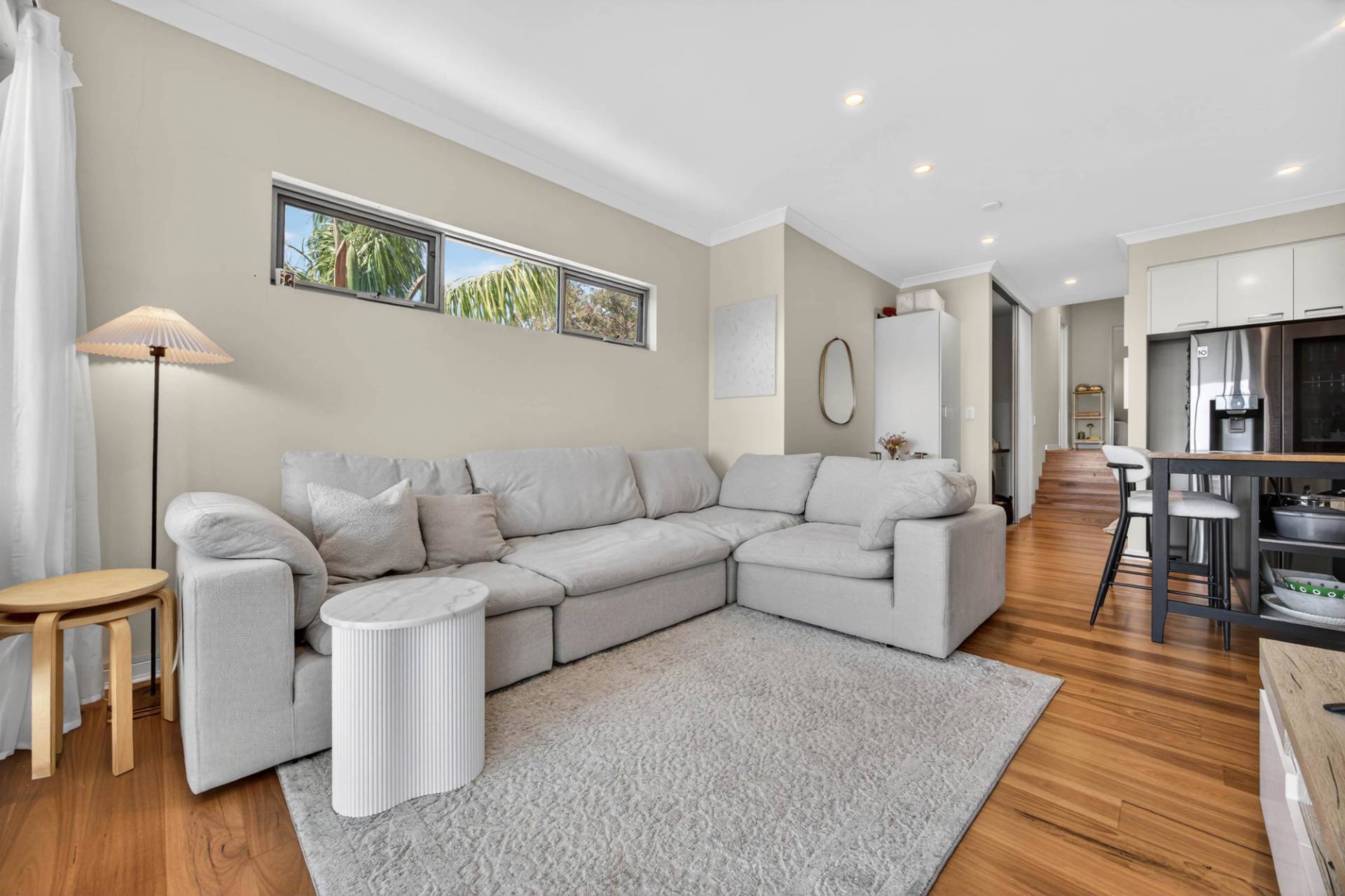 - Light filled living and dining area.
