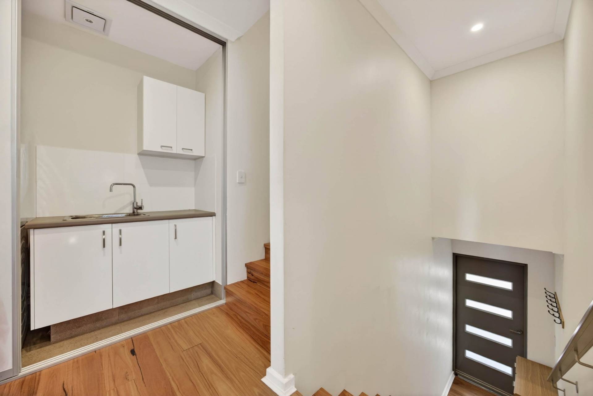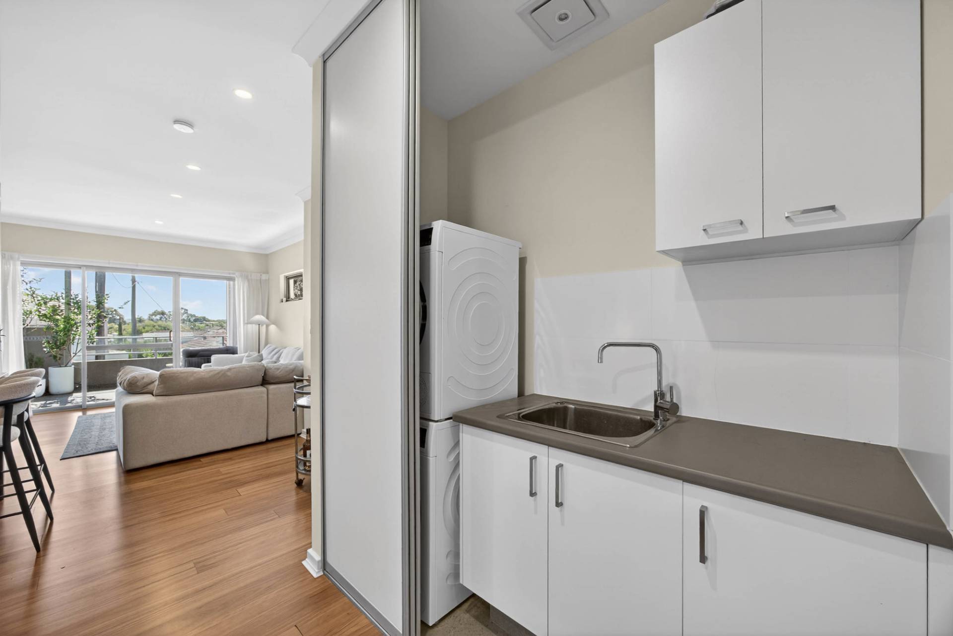 - European style laundry with bench space and cupboard space