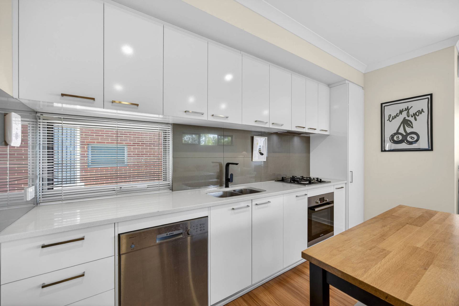 - Modern kitchen with plenty of bench space, dishwasher and storage