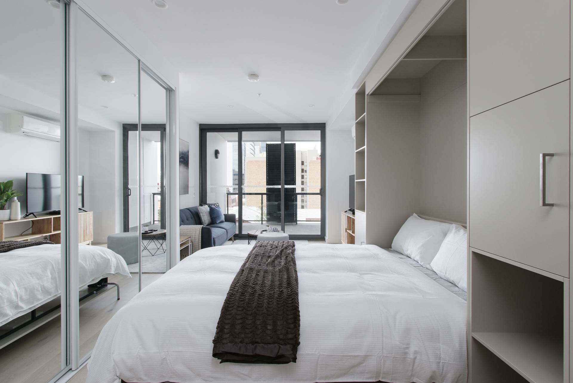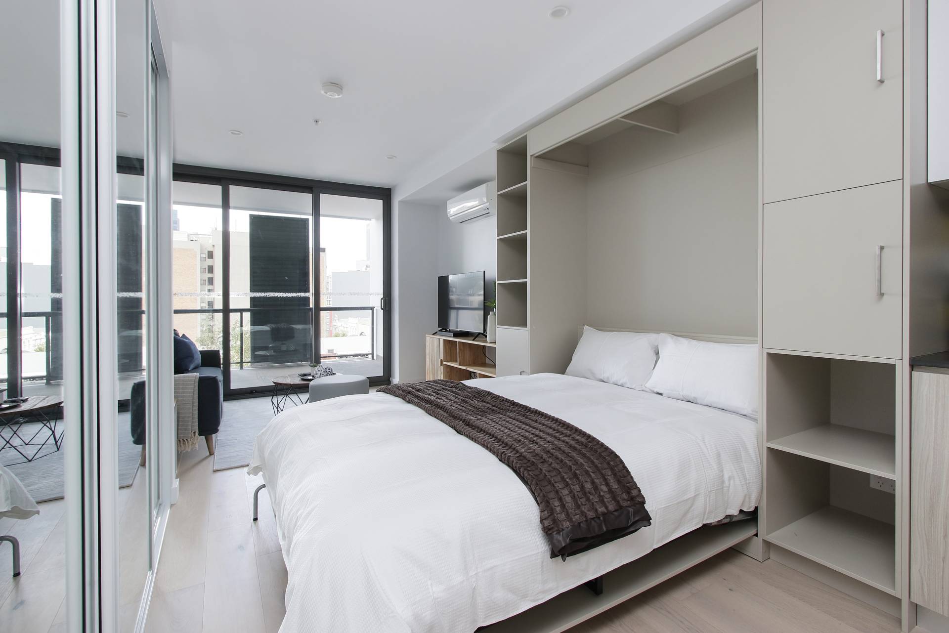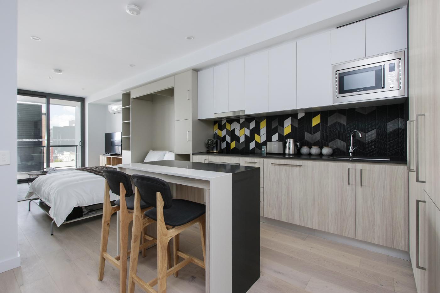 - Studio bedroom with foldout Murphy bed