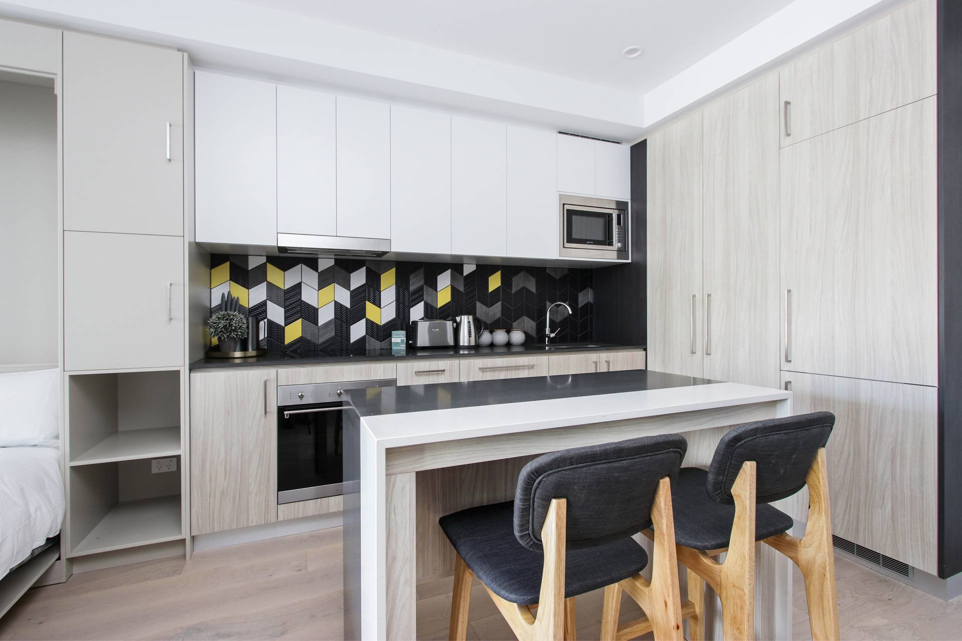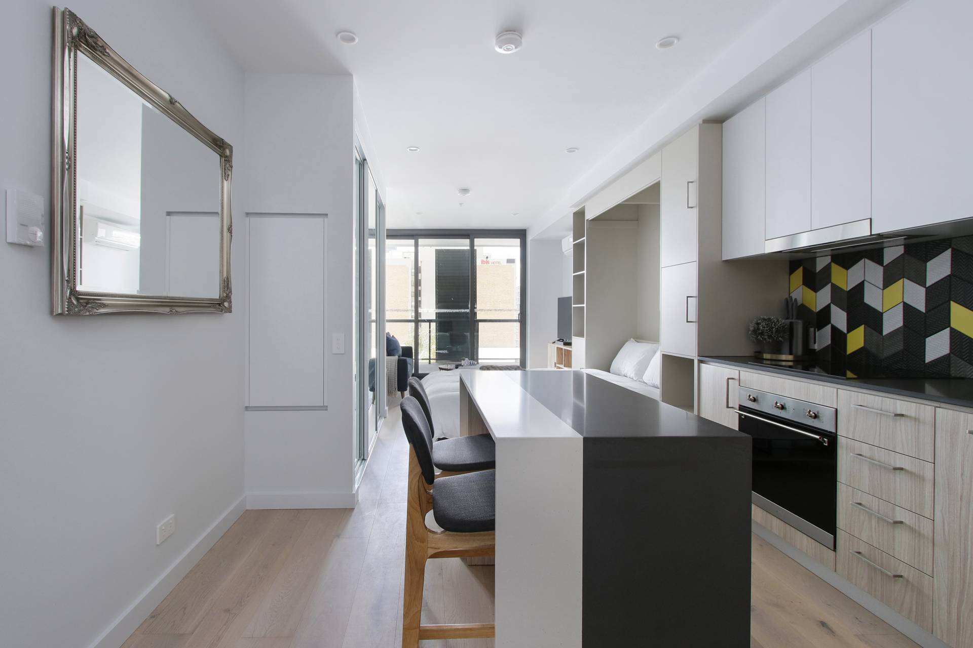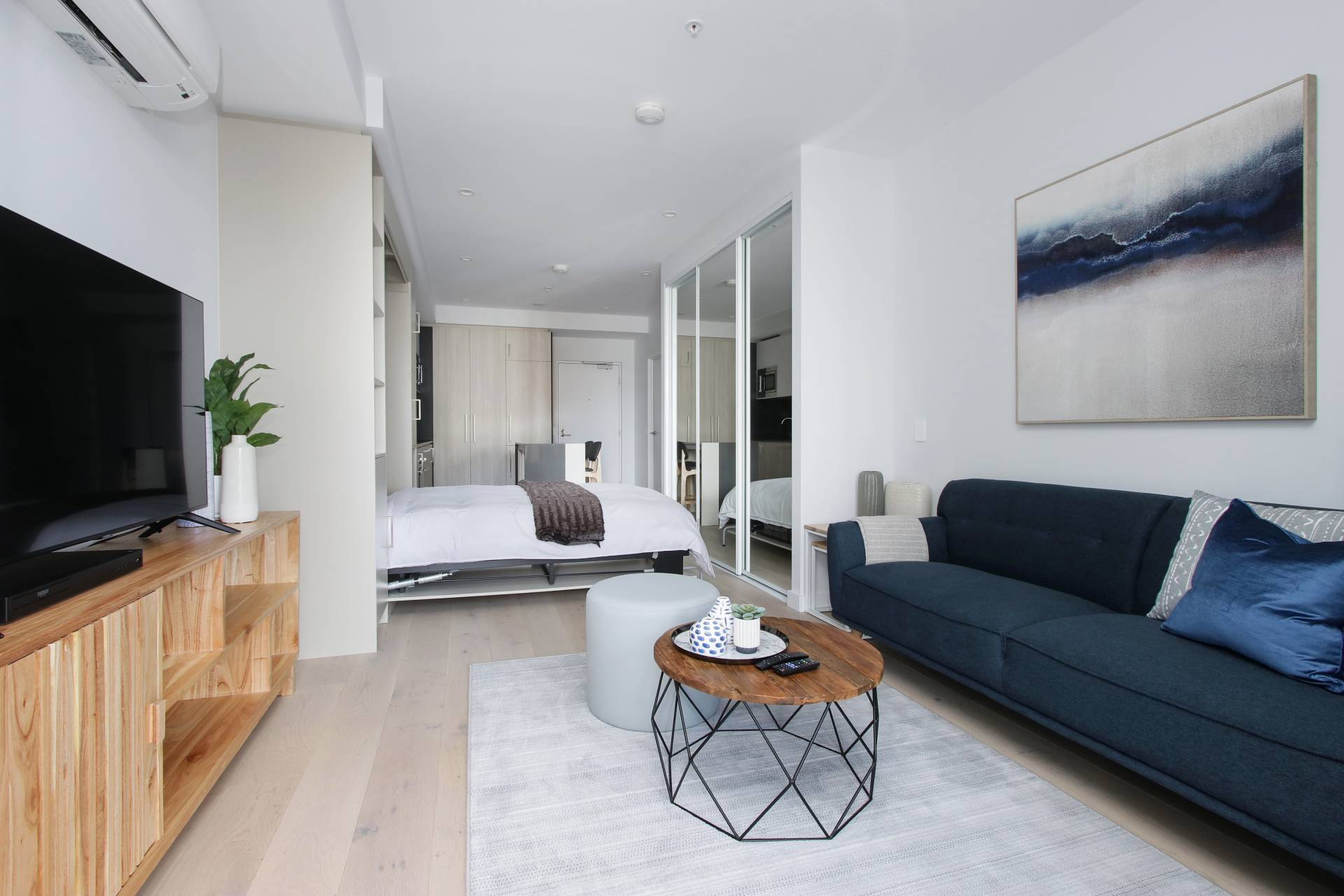 - Studio bedroom with foldout Murphy bed