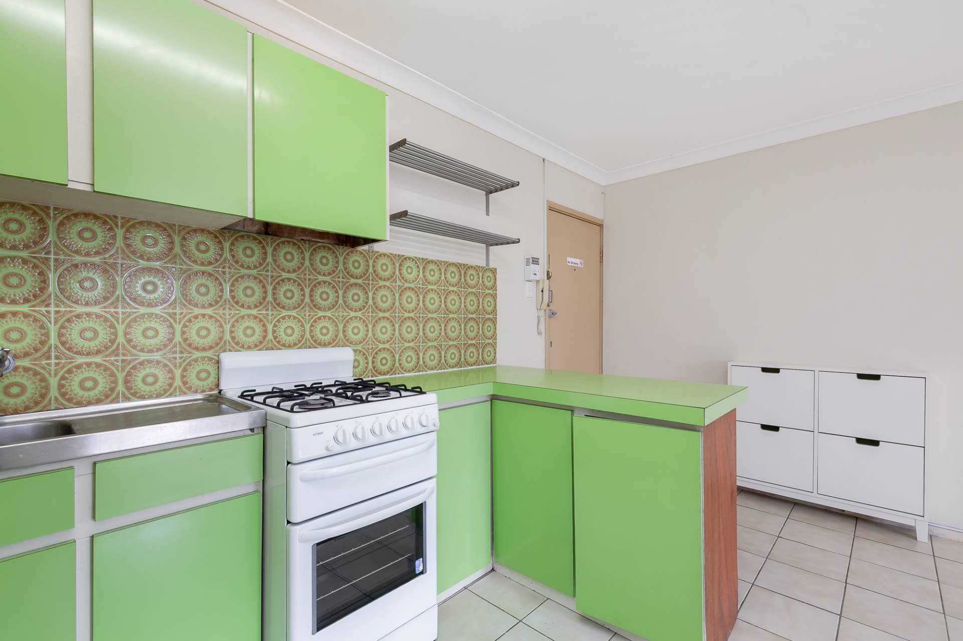 - Open kitchen with gas cooking