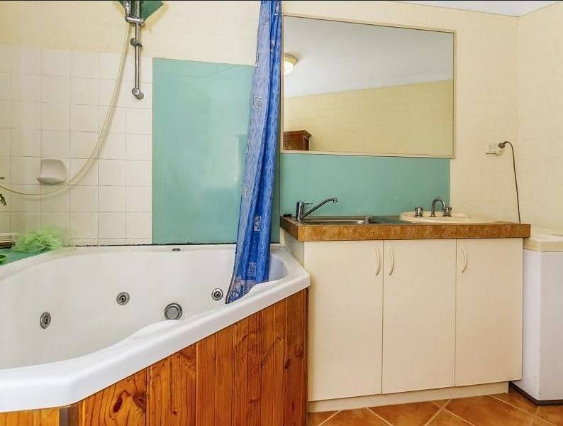 -Light and bright bathroom/laundry with spa bath