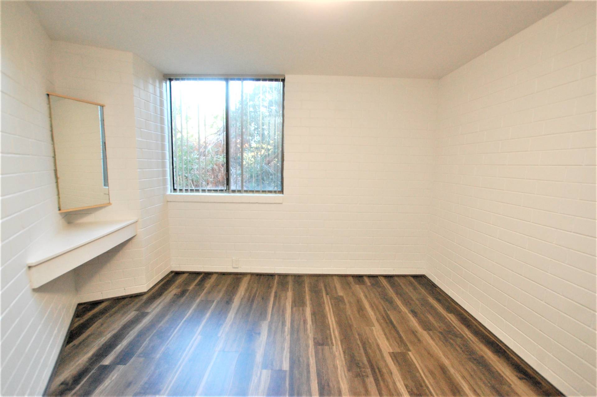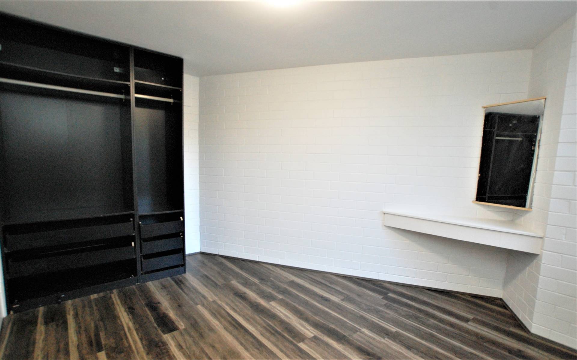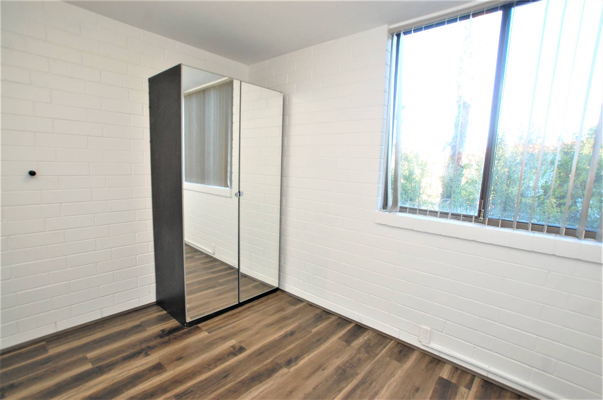 -2 bedrooms with cupboards and vinyl look floorboards