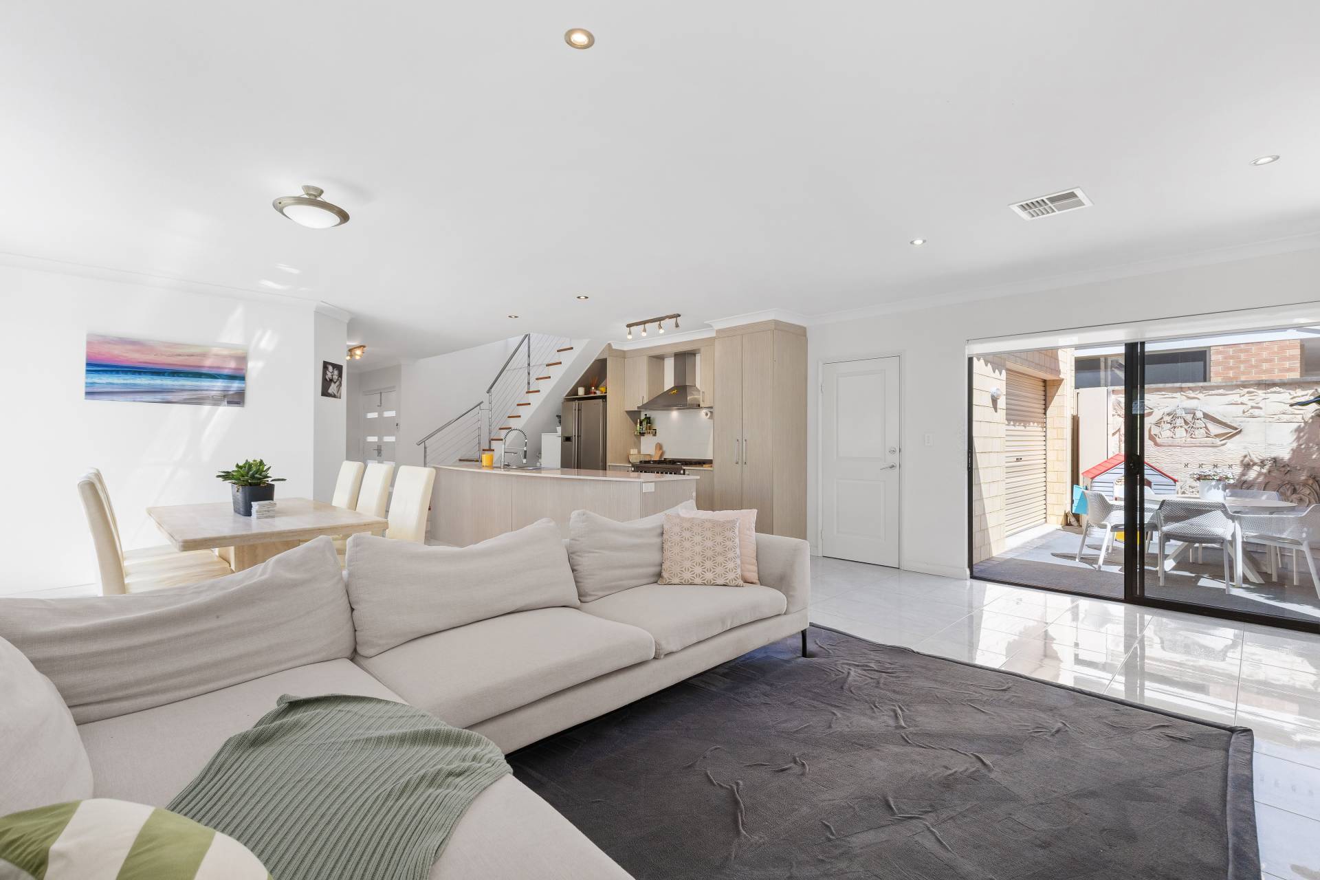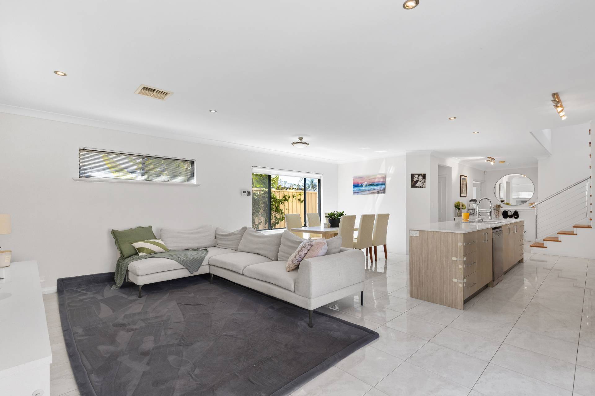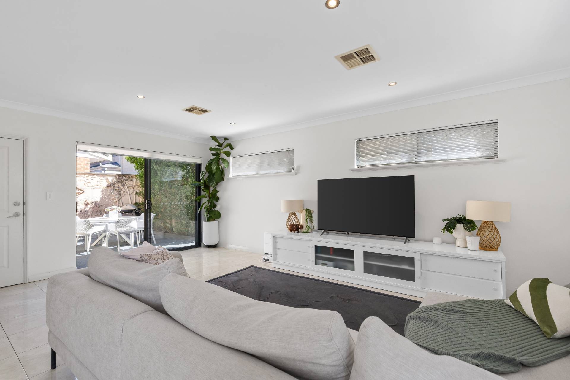• Spacious, light filled tiled open plan living room with sliding doors to rear alfresco