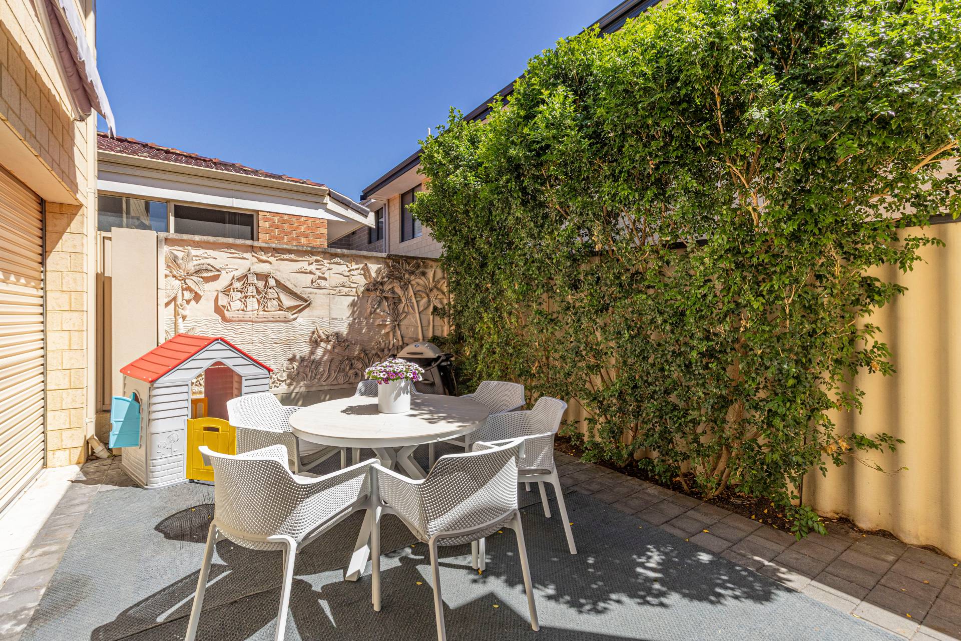• North facing private alfresco courtyard with fold out roller blind