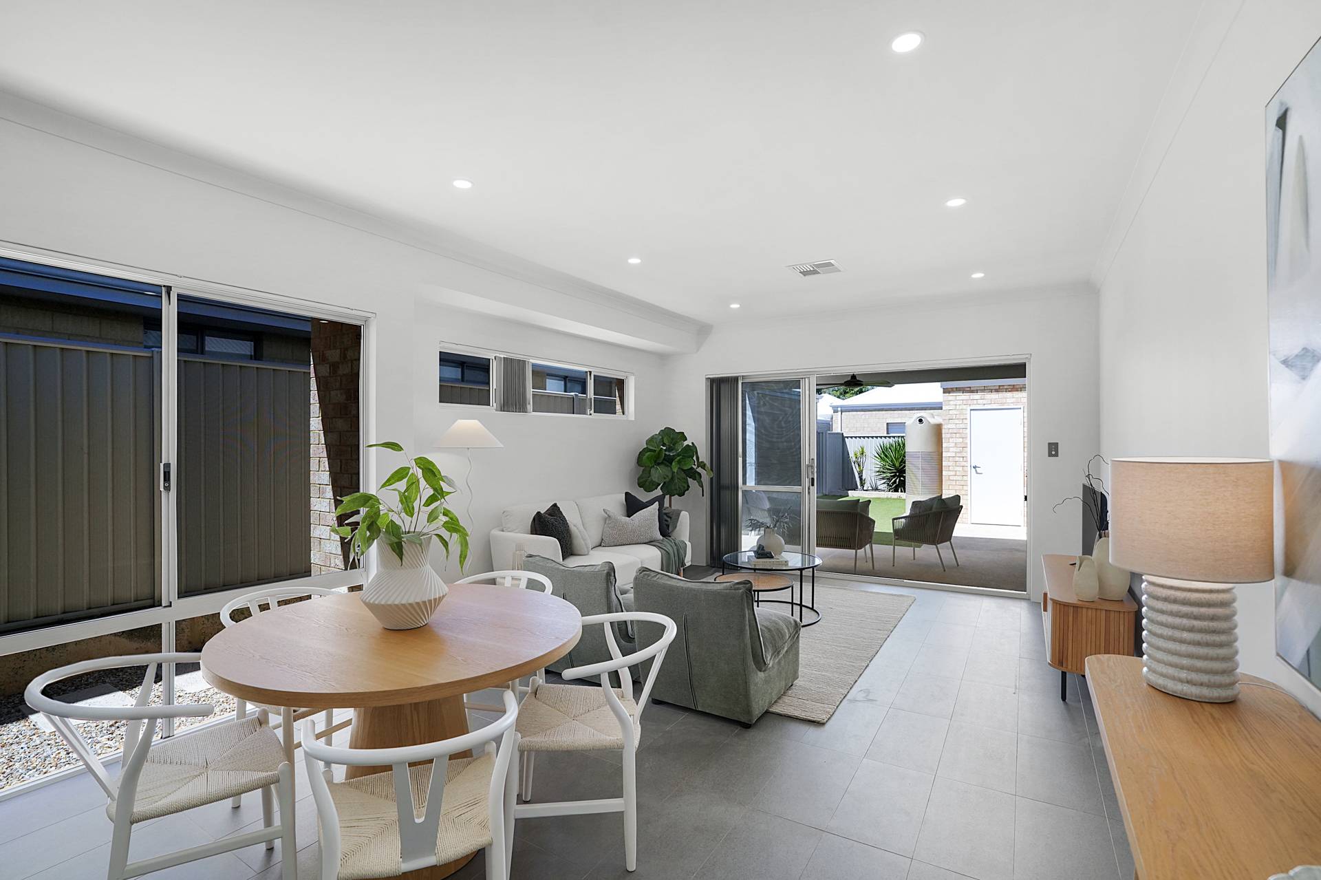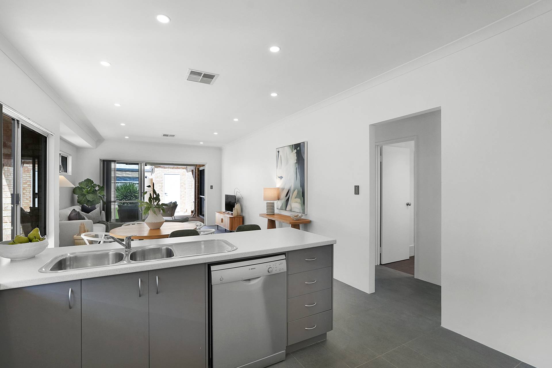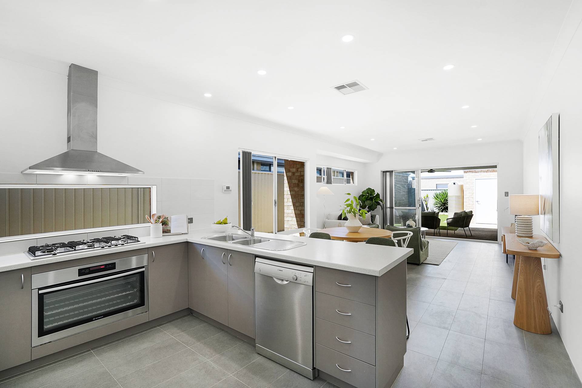 - Open plan living incorporates the kitchen, family room, dining area and thanks to triple sliding doors the backyard also becomes an extension of the main living area