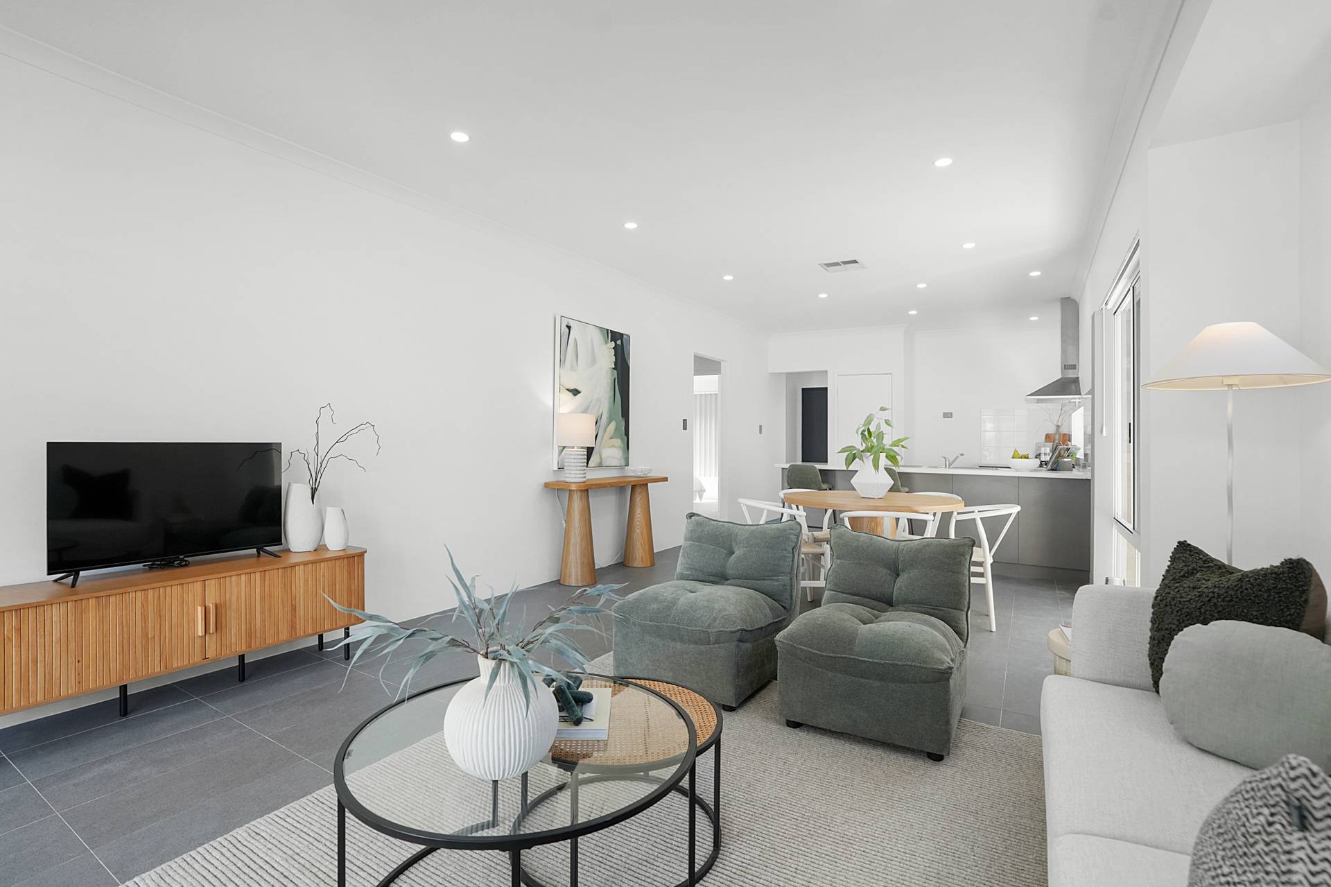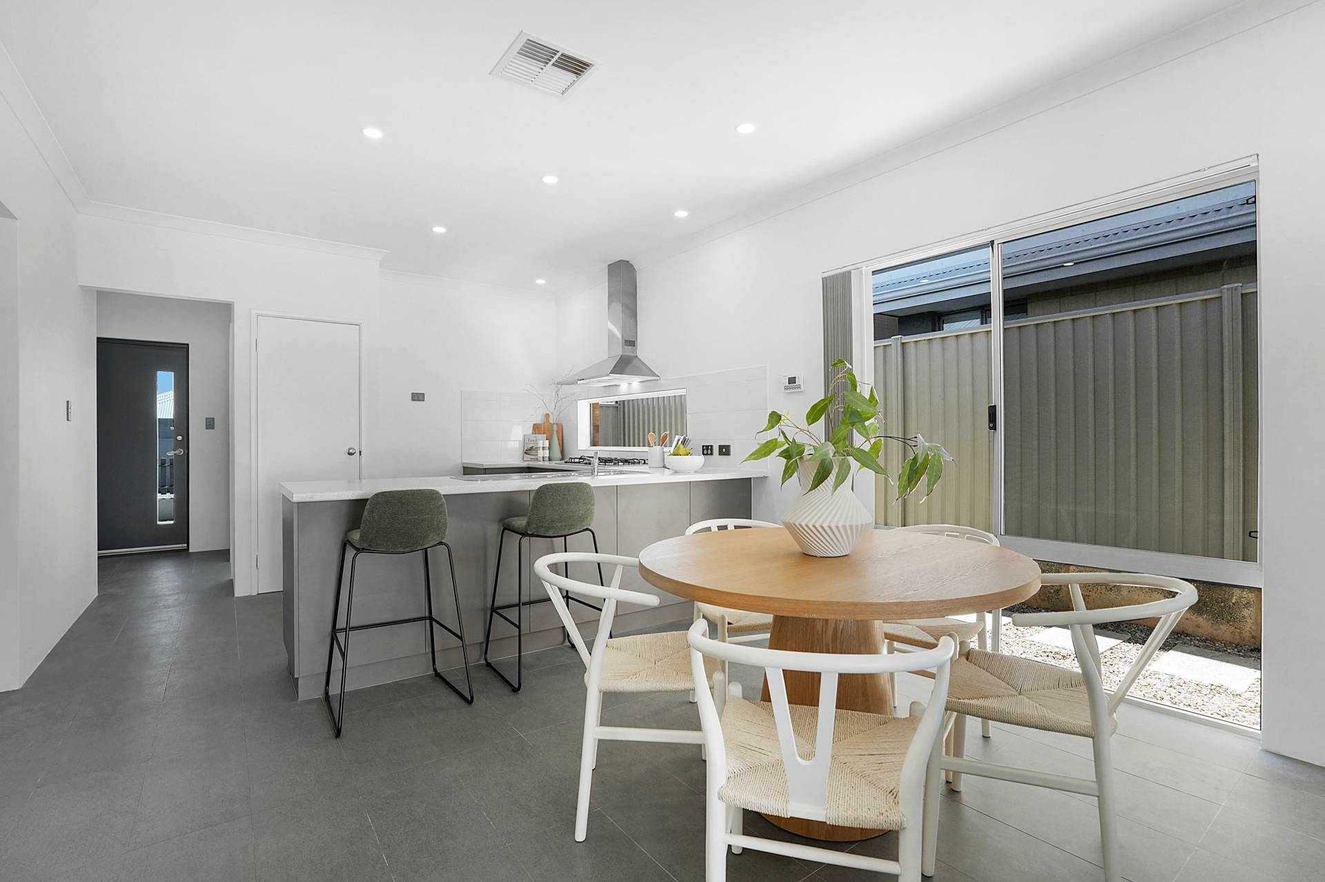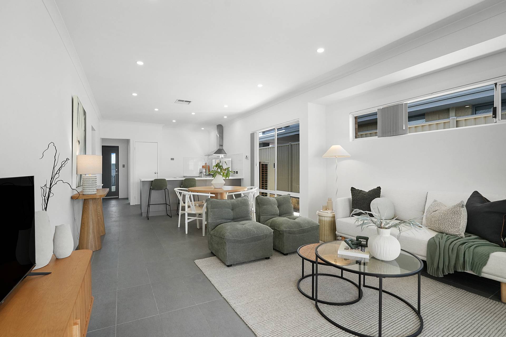- Open plan living incorporates the kitchen, family room, dining area and thanks to triple sliding doors the backyard also becomes an extension of the main living area