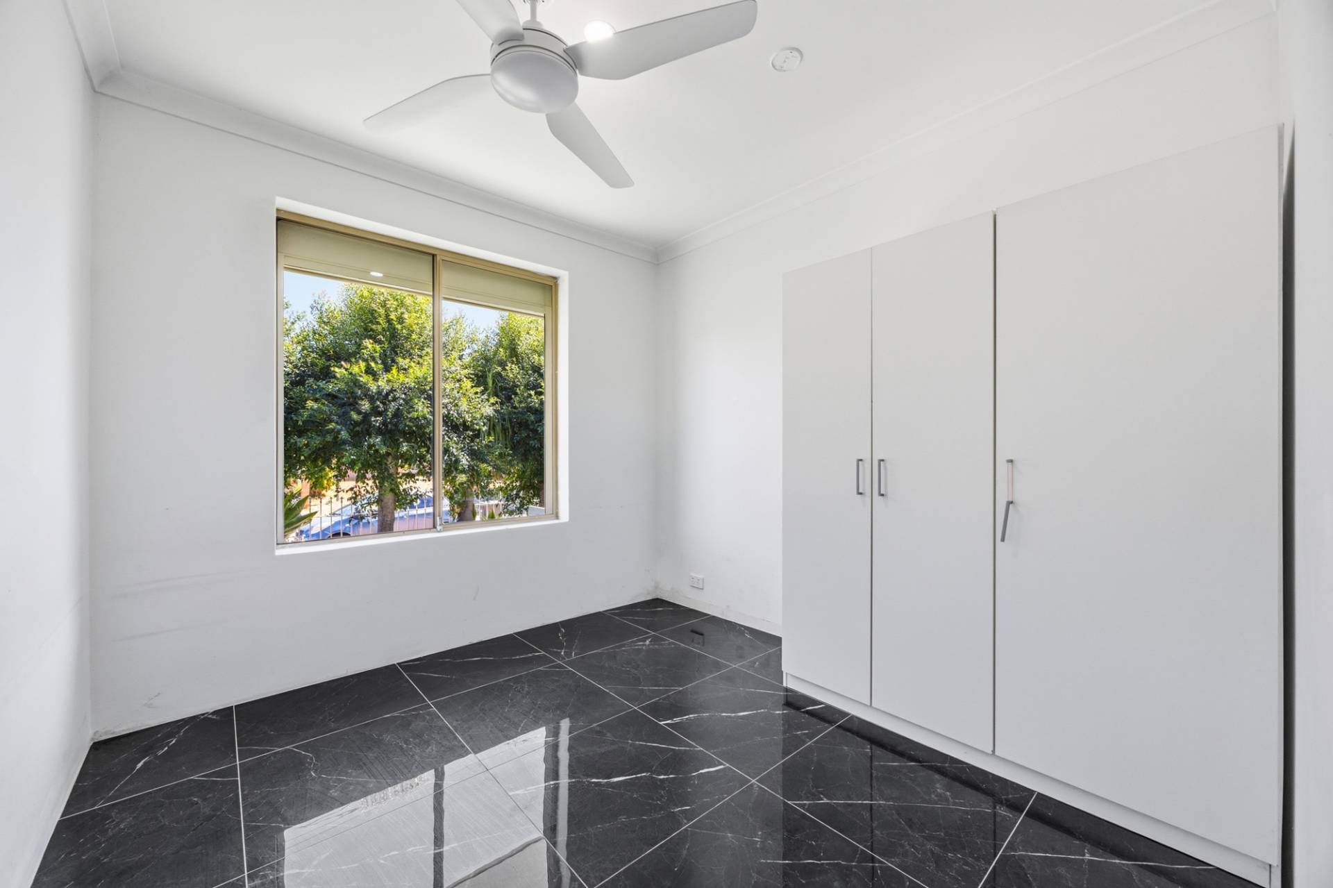 Tiled flooring throughout, offering a sleek and low-maintenance finish