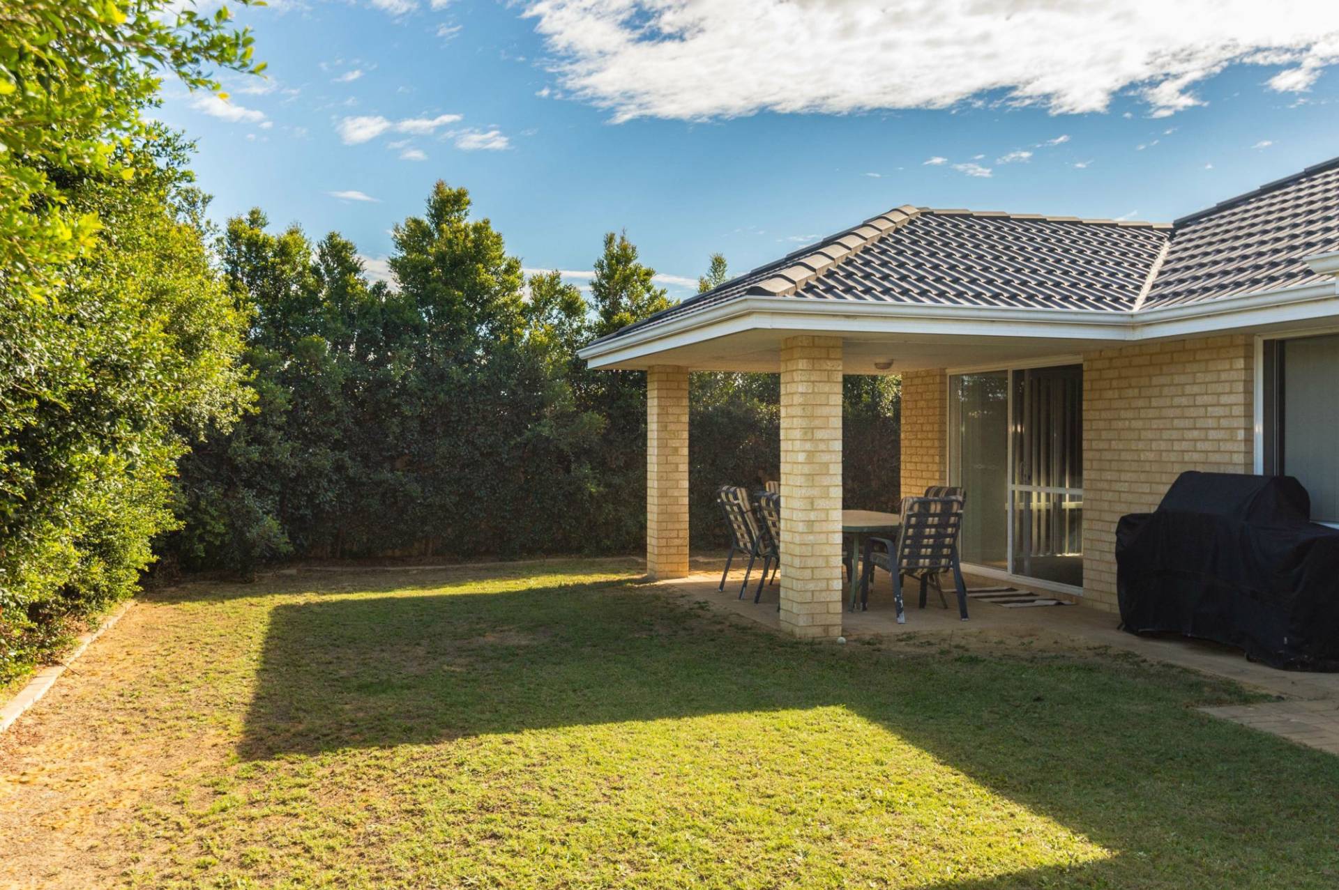 Outdoors the alfresco area overlooks a lawned area perfect for kids play or they can kick a ball in the park directly across the road and schools are walking distance.