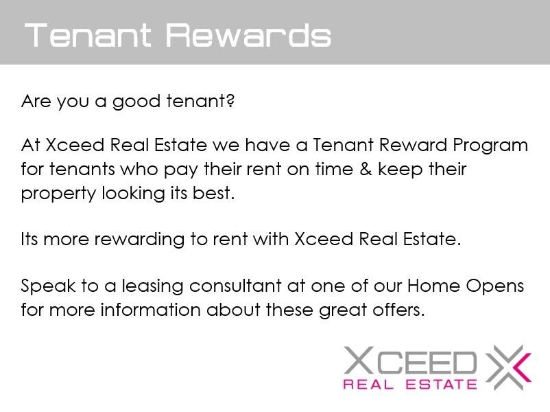 Tenant Reward Program: At Xceed Real Estate we have a Tenant Reward Program for our tenants who pay their rent on time & keep their property looking its best. It’s more rewarding to rent with XceedRE!