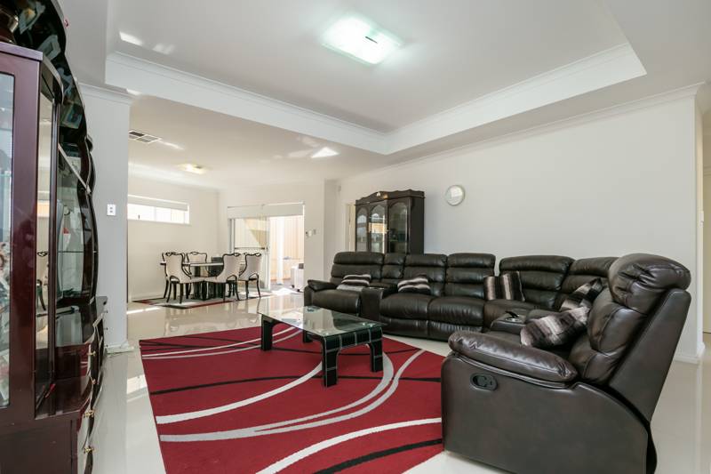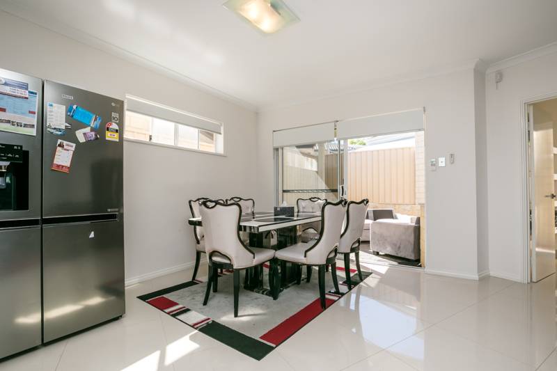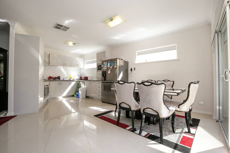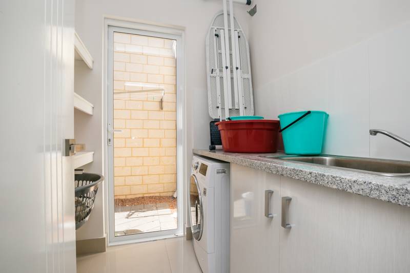 - Large kitchen with built in pantry, stainless steel appliances, overhead cupboards, stylish white cupboard doors and functional layout.