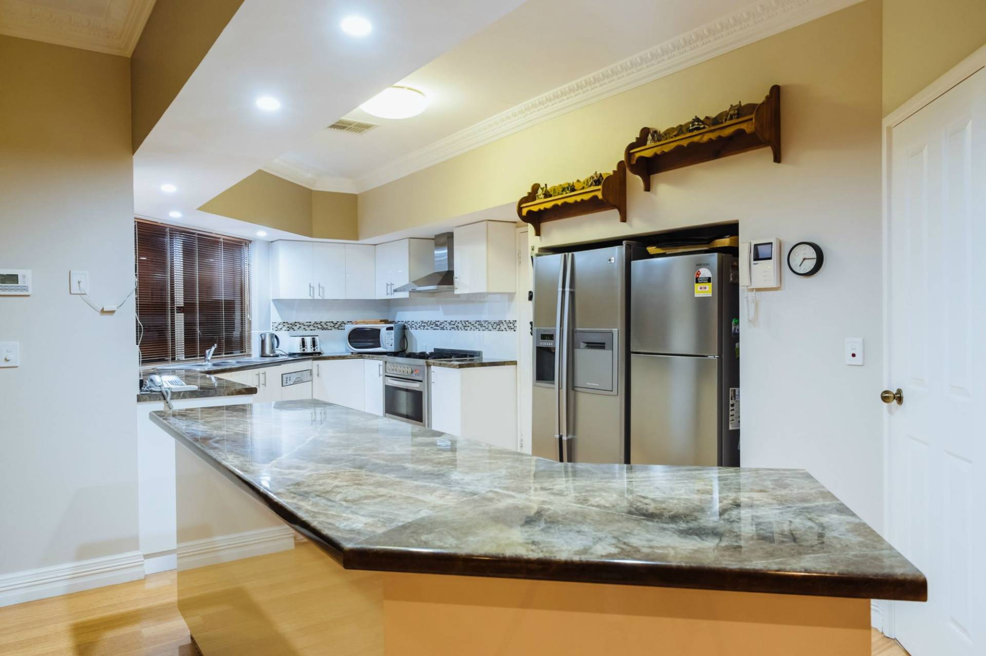 The parents wing is home to the study, main suite including of course one of the luxuriously marble appointed bathrooms.