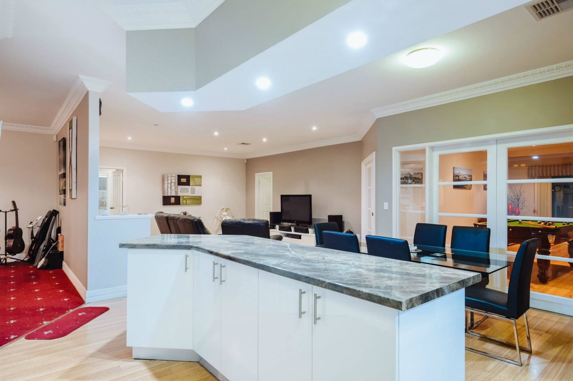 Living zones include formal dining and theatre floored with the finest Wilton carpets. The extended family room, meals and games rooms also make room for you all to get along and get out of each other's way when there's need to pursue your own interests.