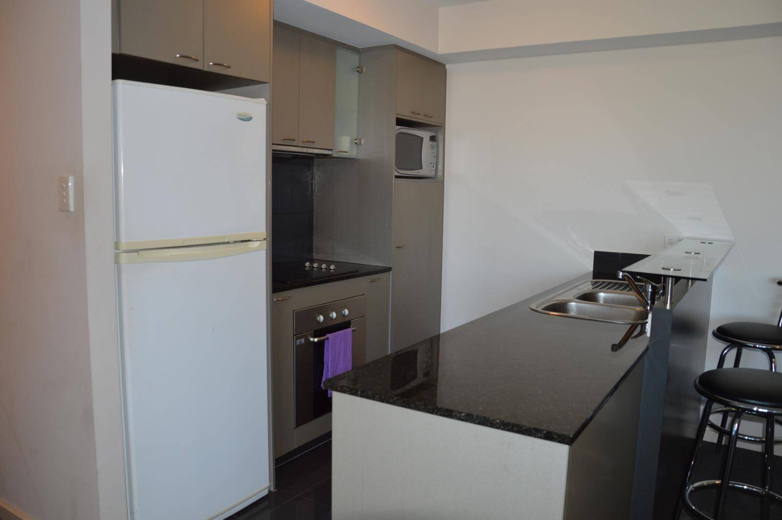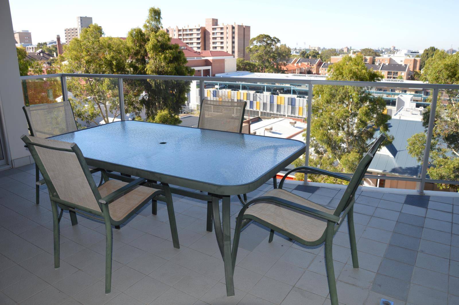 This furnished & equipped (excluding linen) apartment is on the 5th Floor and has great views out over Hay street. You can just stroll down to a local bar or restaurant instead.