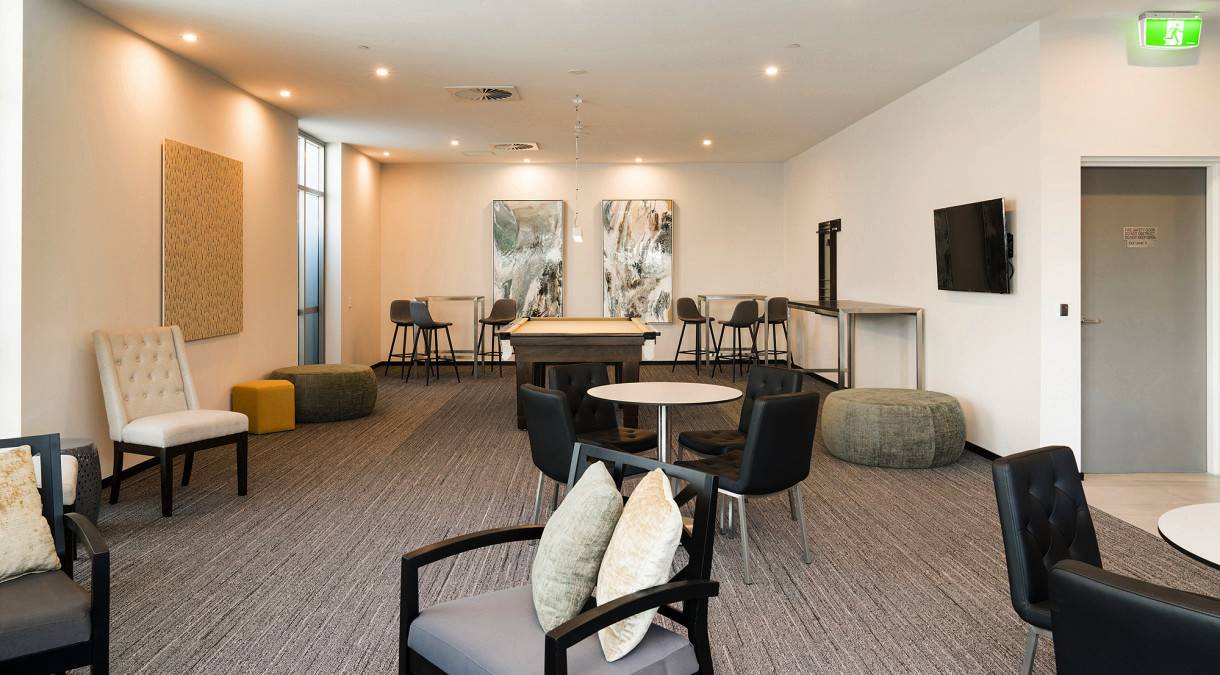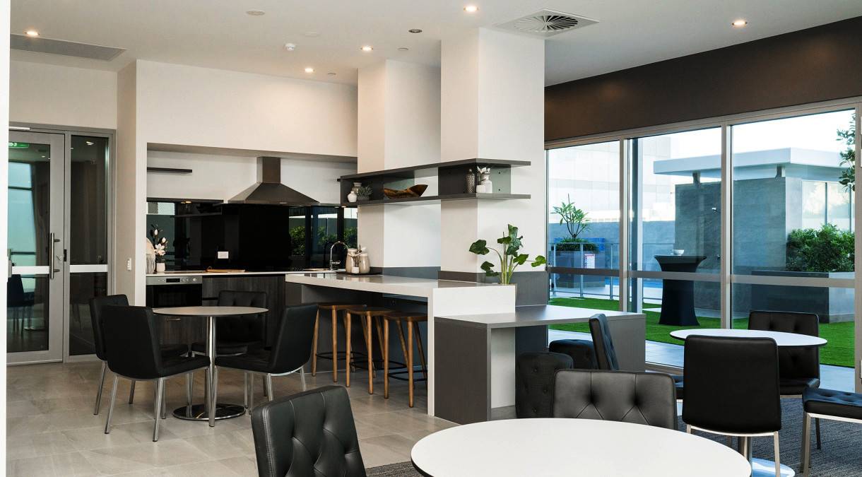 The AIRE Leisure Club includes resort style facilities including a 22m swimming pool, sauna, fully equipped gymnasium, residents lounge, games room, sky lounge and roof top garden, BBQ area, cabana lounge, outdoor dining and executive meeting room.